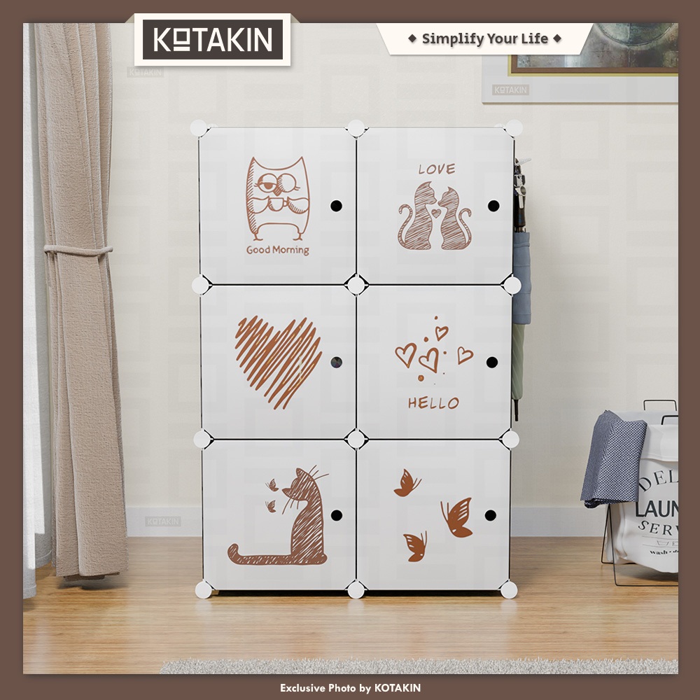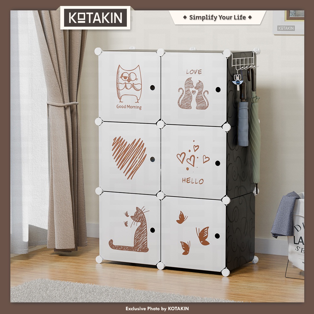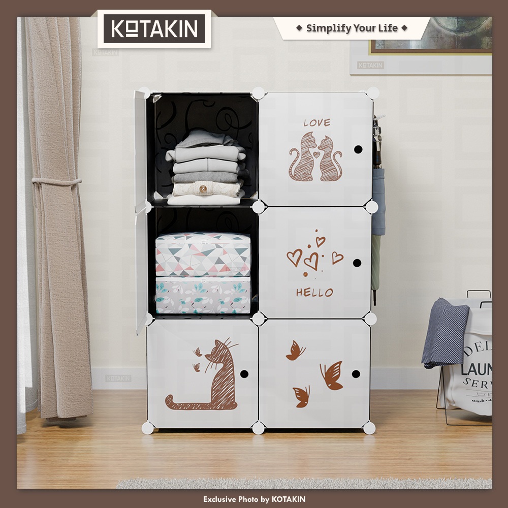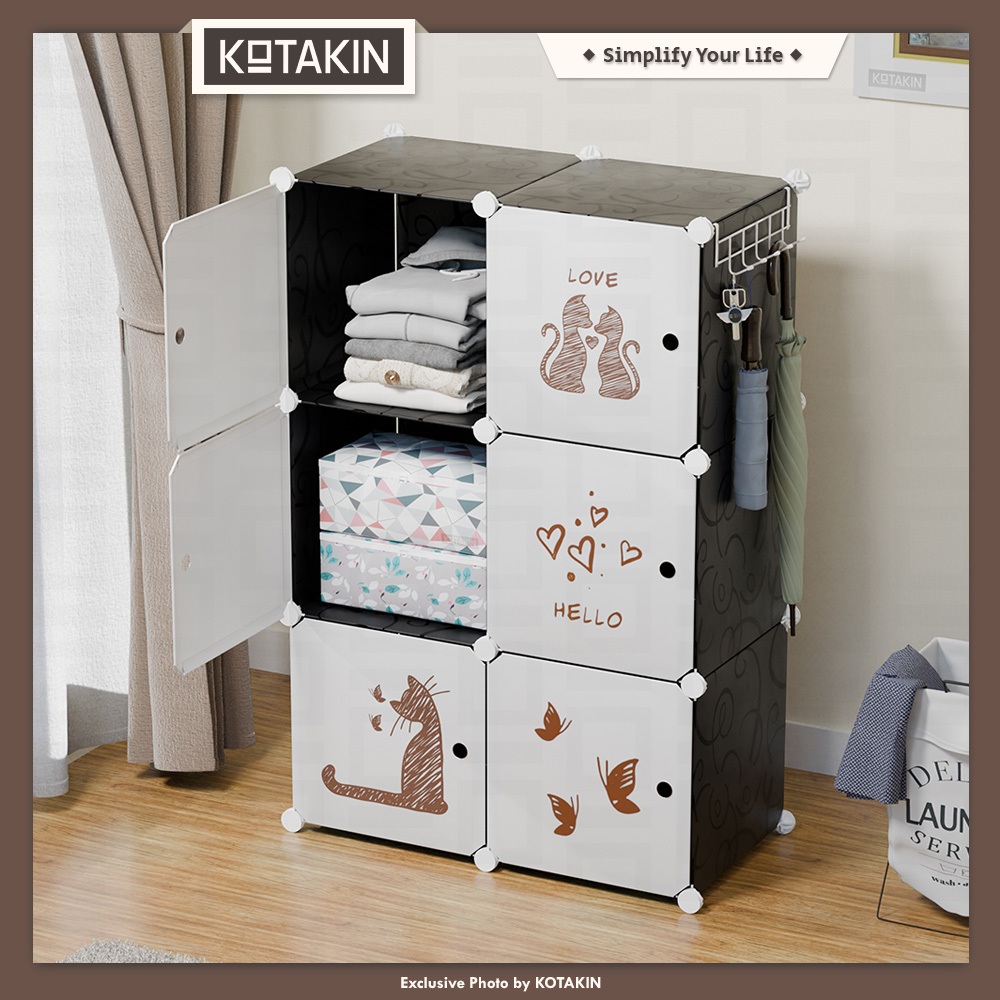 KOTAKIN Lemari Baju Rakit 6 Pintu Plastik Anak Kos Rak Portable Pakaian Penyimpanan Serbaguna