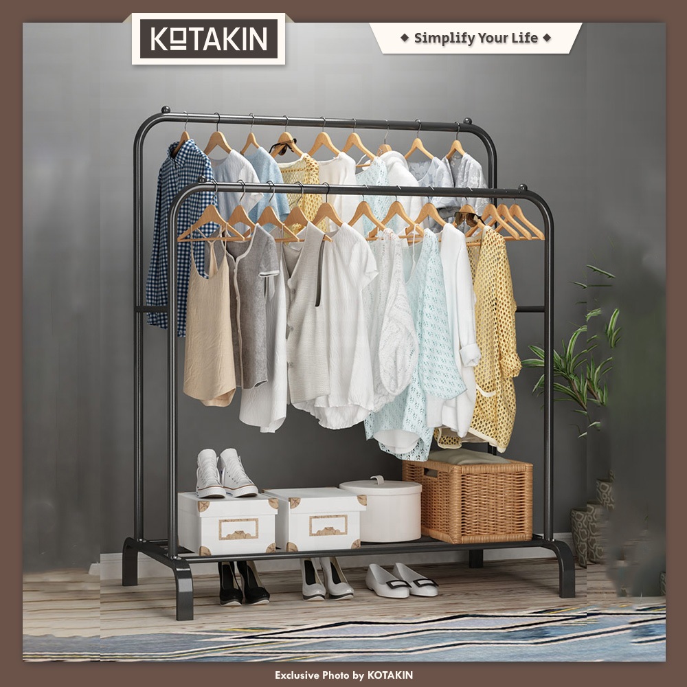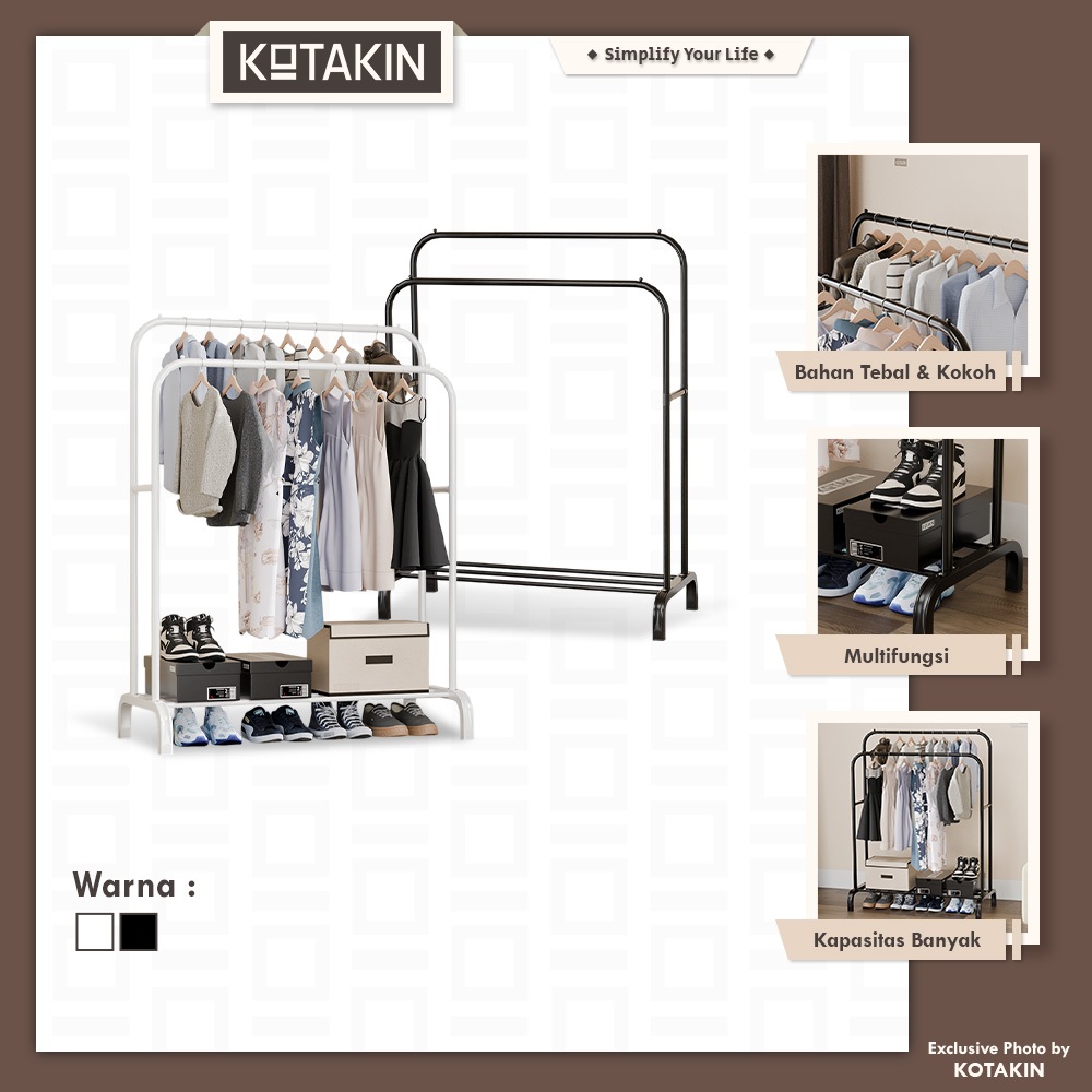 KOTAKIN Stand Hanger Gawang Double Gantungan Baju Celana Tas Display Butik Pakaian Besi Kokoh