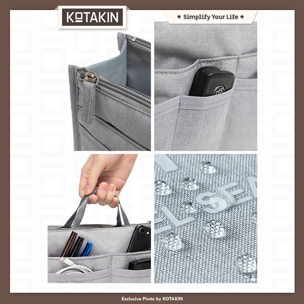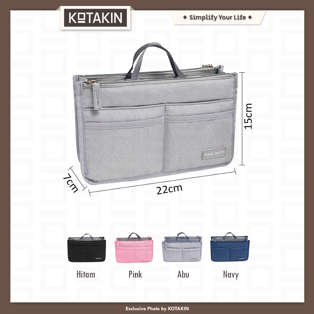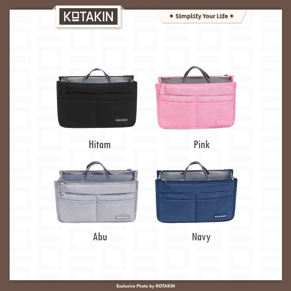 KOTAKIN Organizer Totebag Dual In Bag Pouch Travel Dalaman Compartment Sekat Tas Bahu