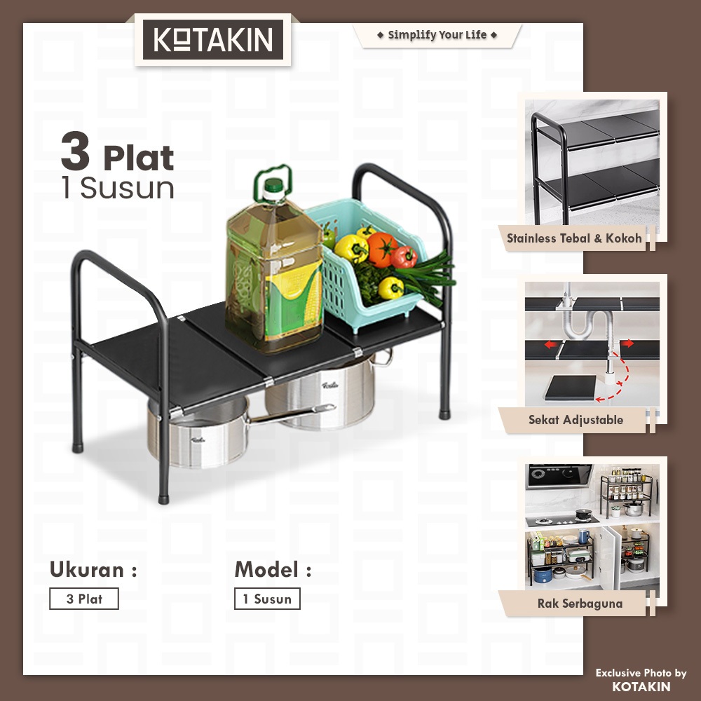 KOTAKIN Rak Dapur Microwave Panci Bawah Wastafel Besi Flexible Sepatu Bumbu Serbaguna