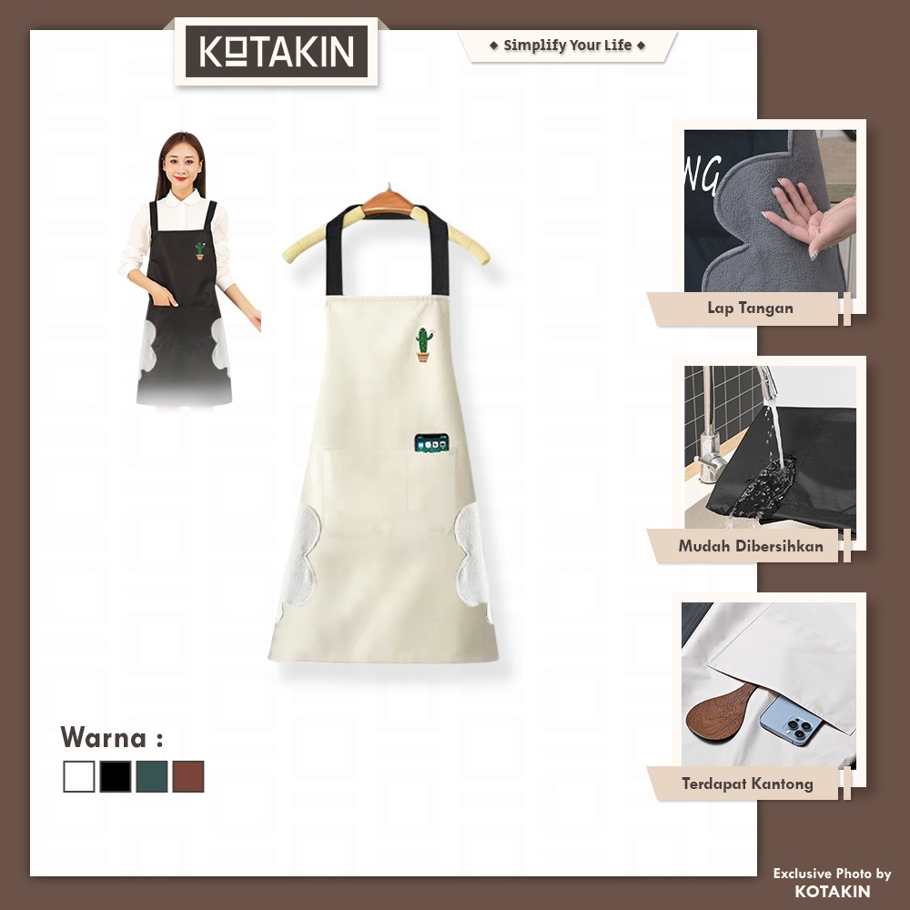 KOTAKIN Celemek Masak Anti Air Minyak Saku Handphone Apron Dapur Chef Barista Tebal Premium