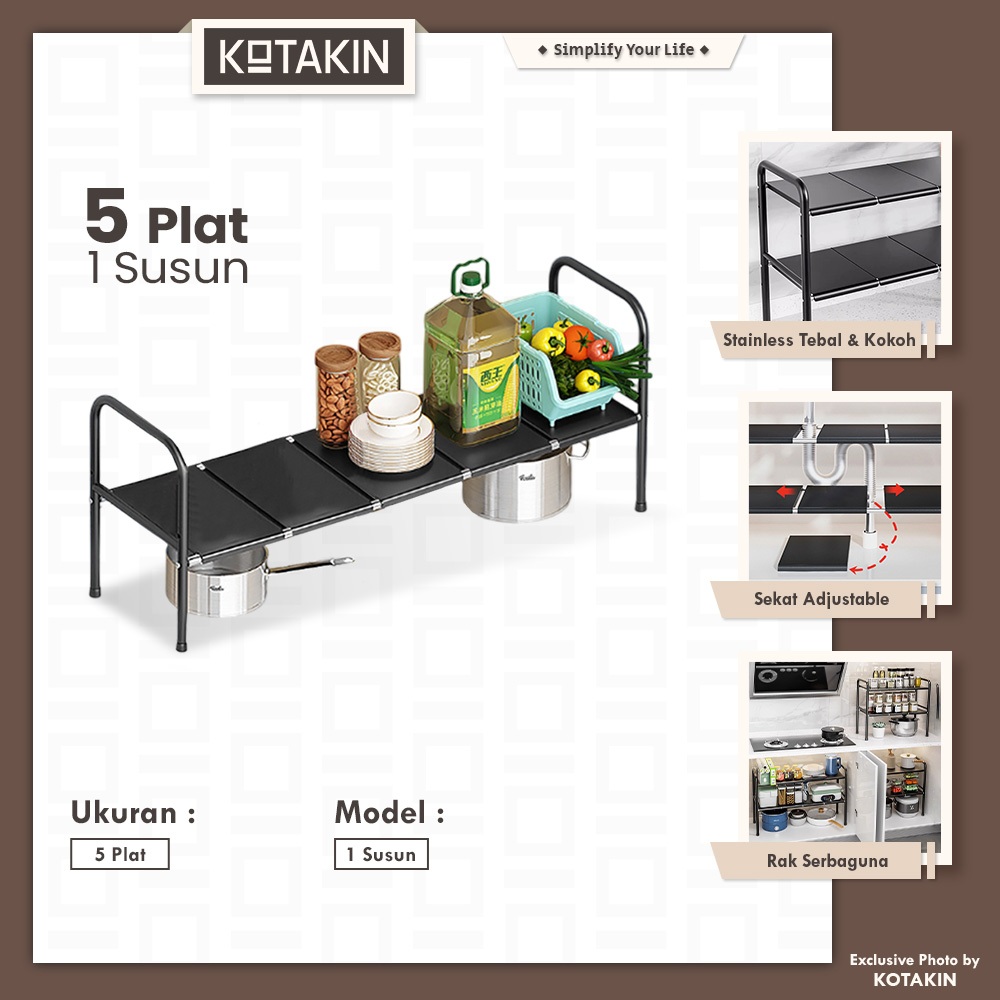 KOTAKIN Rak Kolong Dapur Bawah Wastafel Organizer Panci Wajan Penyimpanan Serbaguna