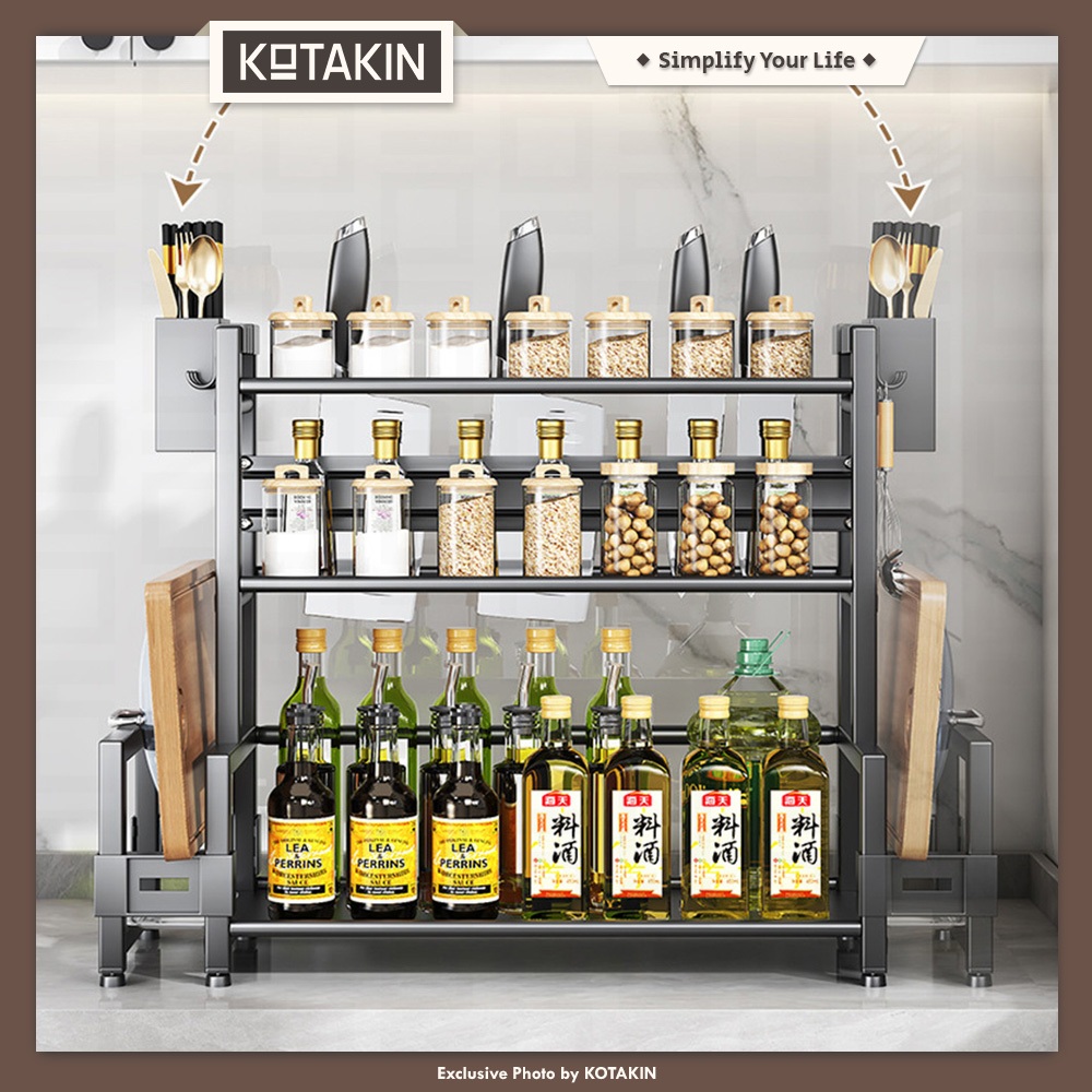 KOTAKIN Rak Bumbu Dapur Organizer Lemari Piring Mangkok Wastafel Pengering Cuci