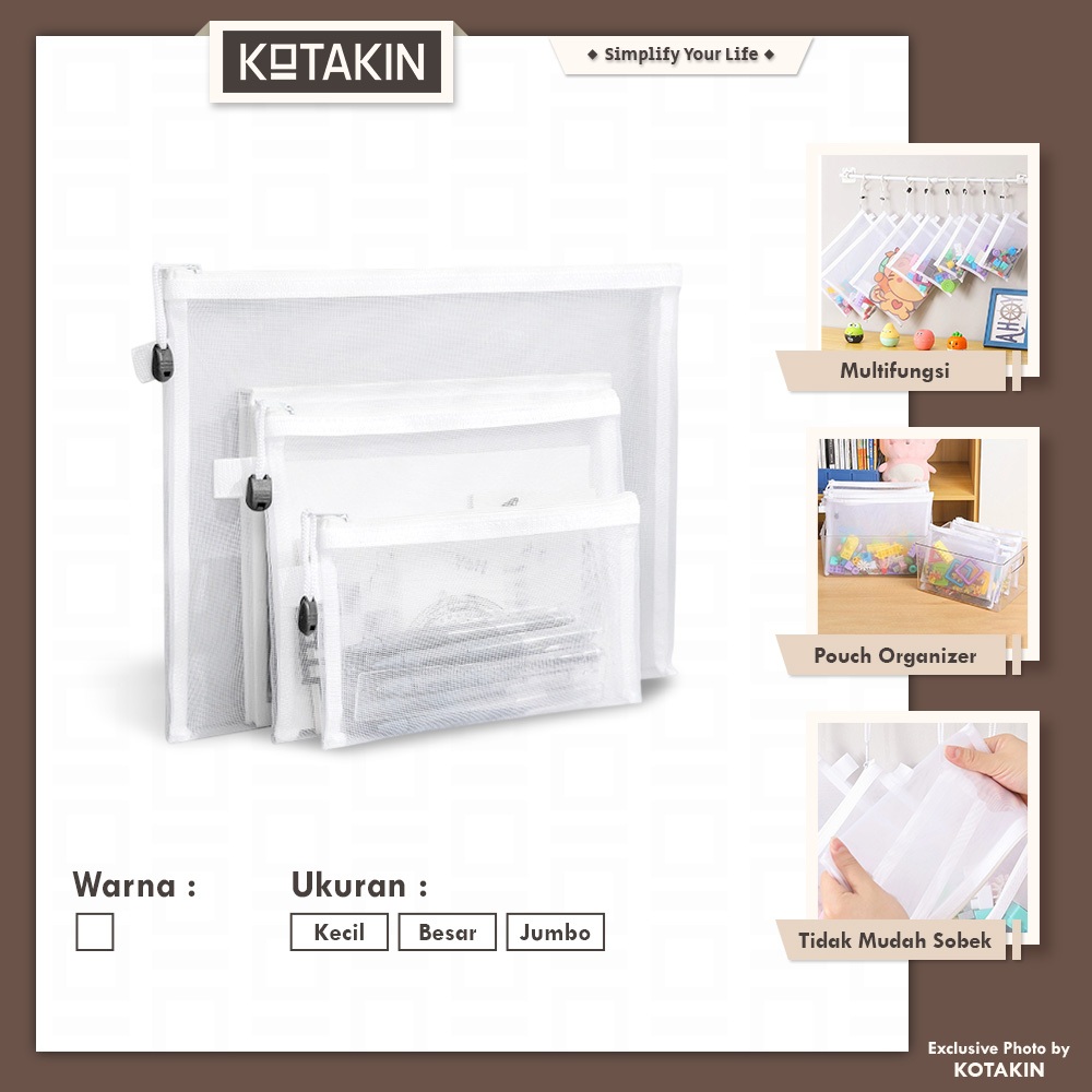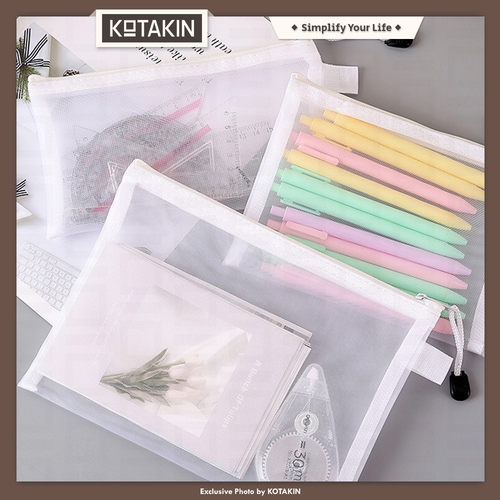 KOTAKIN Tempat Kotak Pensil Pouch Jaring Stationery Alat Tulis Pensil Bolpoin ATK Sekolah