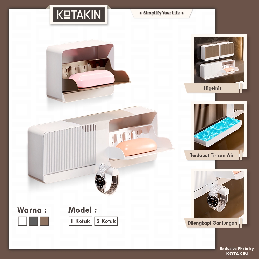 KOTAKIN Tempat Sabun Batang Tempel Tertutup Lubang Air Box Kotak Sekat Kamar Mandi Drain Box Soap