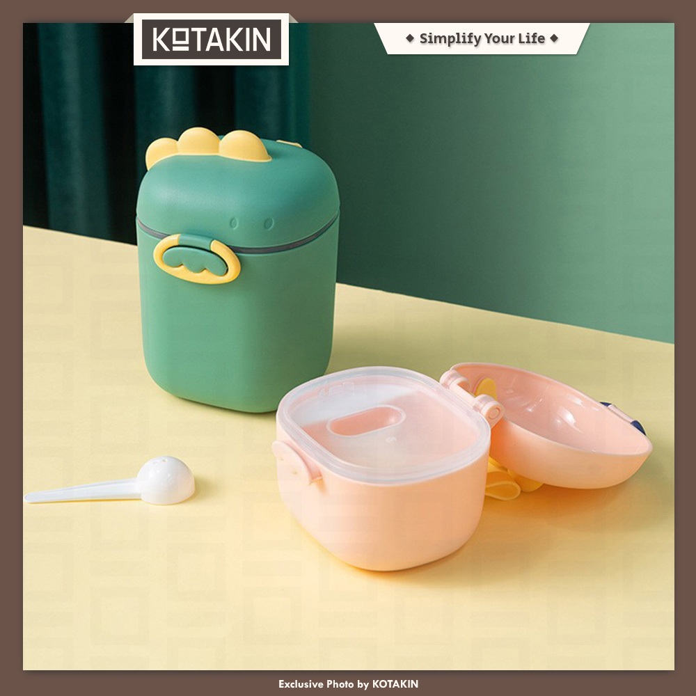 KOTAKIN Tempat Box Susu Bayi Bubuk Wadah Snack Sereal Karakter Dino Tutup Sealed Anti Tumpah
