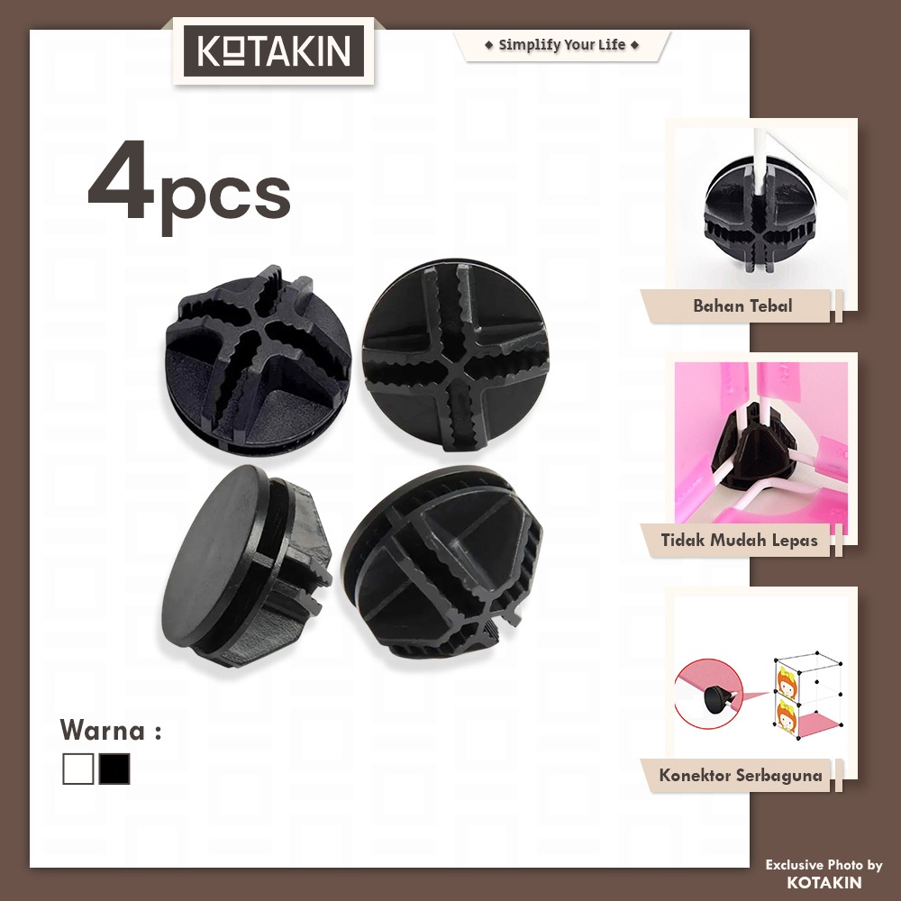 KOTAKIN 4 PCS Kaki Lemari Connector Sambungan Rak Portable Konektor 4 Arah Siku Plastik