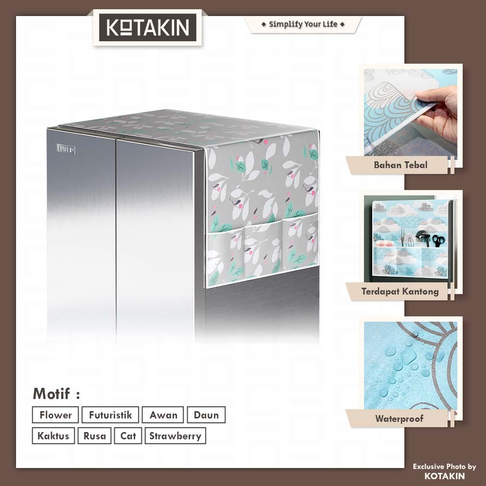 KOTAKIN Taplak Kulkas Side By Side 2 Pintu Waterproof Kantong Storage Pouch Sarung Cover Penutup Lemari Es