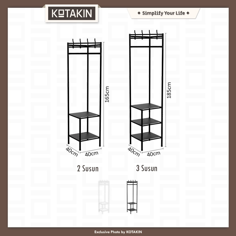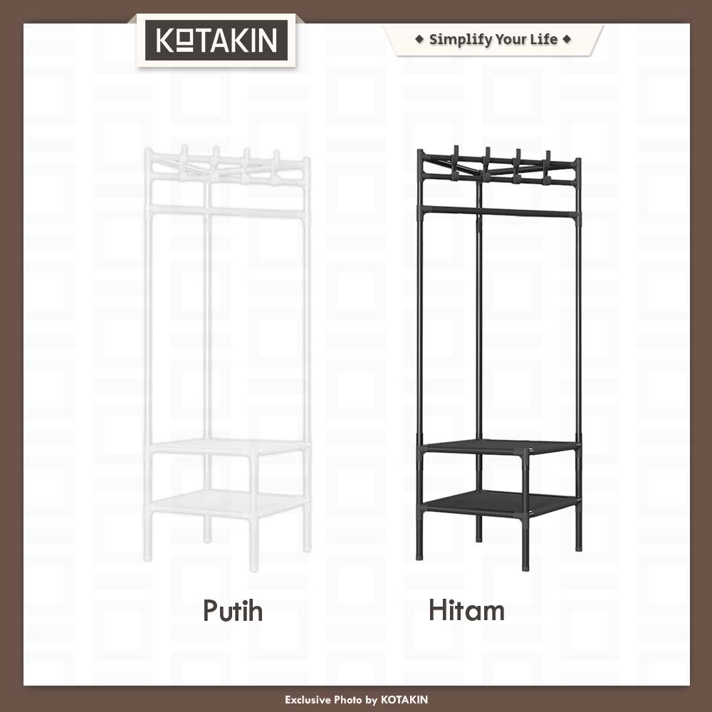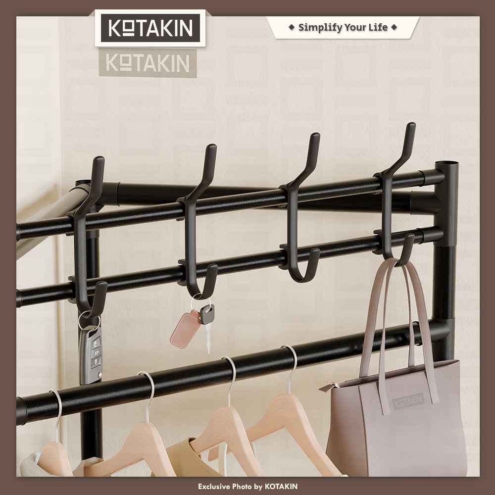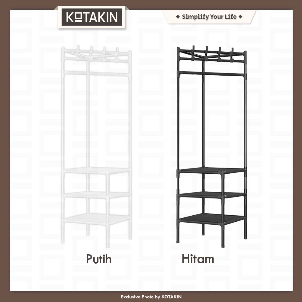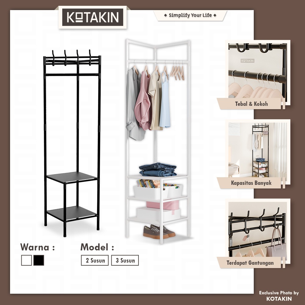 KOTAKIN Rak Gantung Sudut Stand Hanger Pakaian Lemari Buku Terbuka Penyimpan Barang Serbaguna