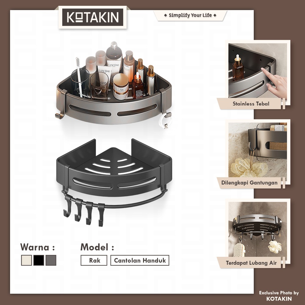 KOTAKIN Rak Sudut Kamar Mandi Tempat Sabun Shampoo Handuk Penyimpanan Kosmetik Skincare Bumbu Dapur Besi Tebal Premium