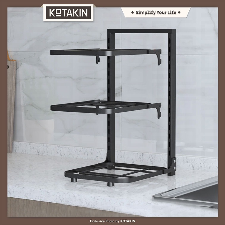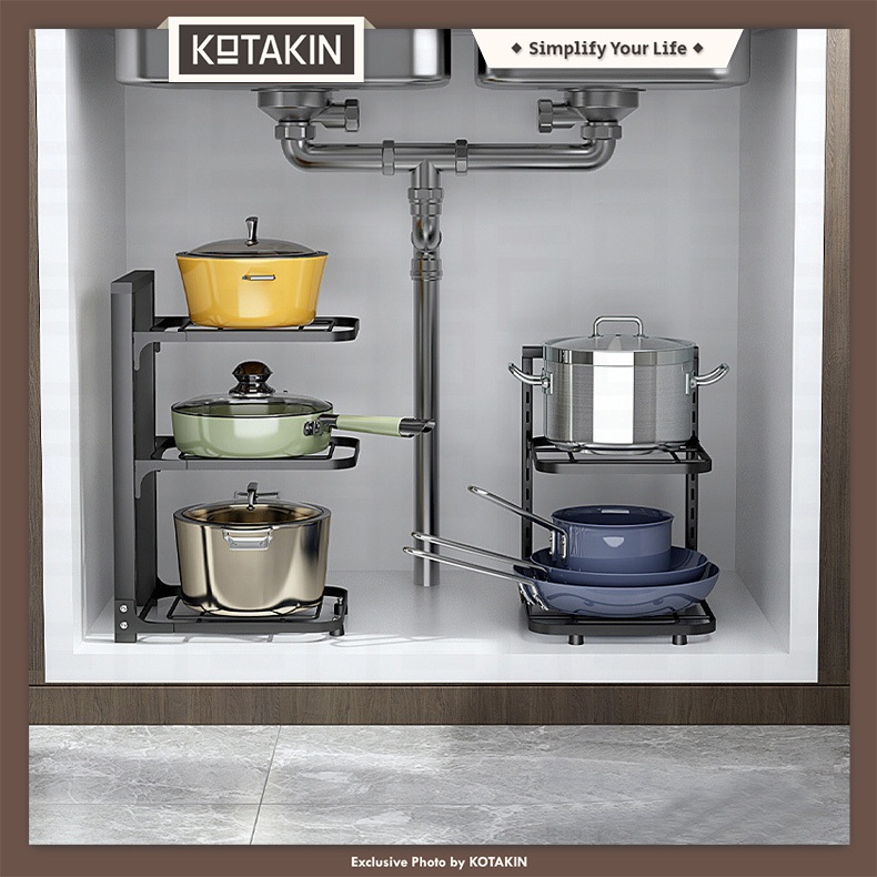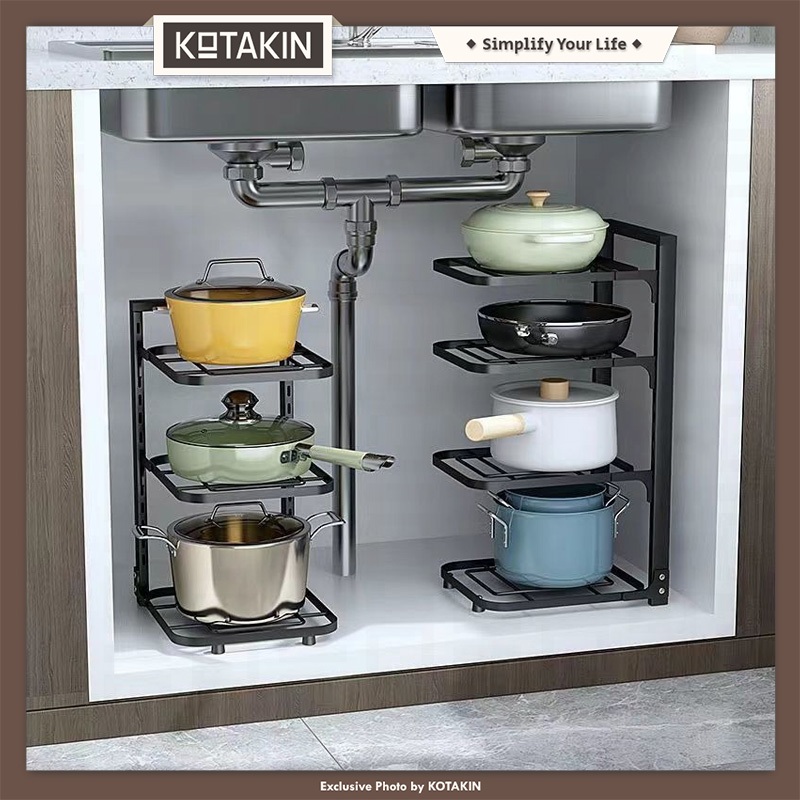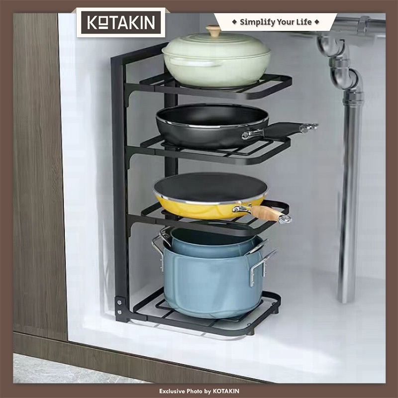 KOTAKIN Rak Piring Stainless Wastafel Bawah Dapur 2 3 4 Tingkat Rak Penyimpanan Wajan Teflon Mlutifungsi