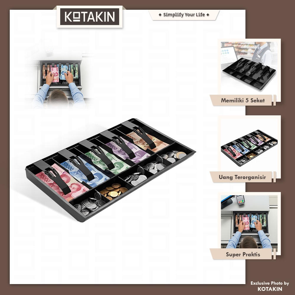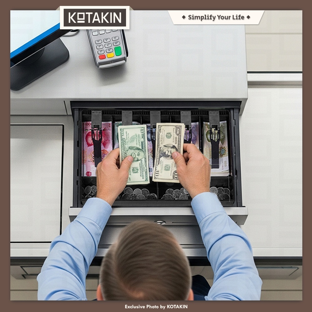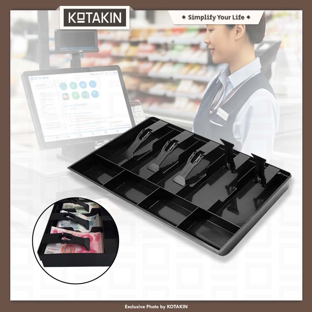 KOTAKIN Cash Drawer Laci Kasir Plastik Tebal Kotak Tempat Uang Dalam Tray 5+4 9 Sekat Untuk Toko Warung