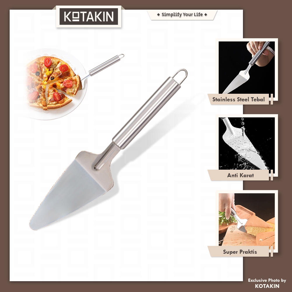 KOTAKIN Cake Server Sendok Saji Kue Tart Ulang Tahun Spatula Pie Pisau Pemotong Pizza Shovel Segitiga Stainless Steel