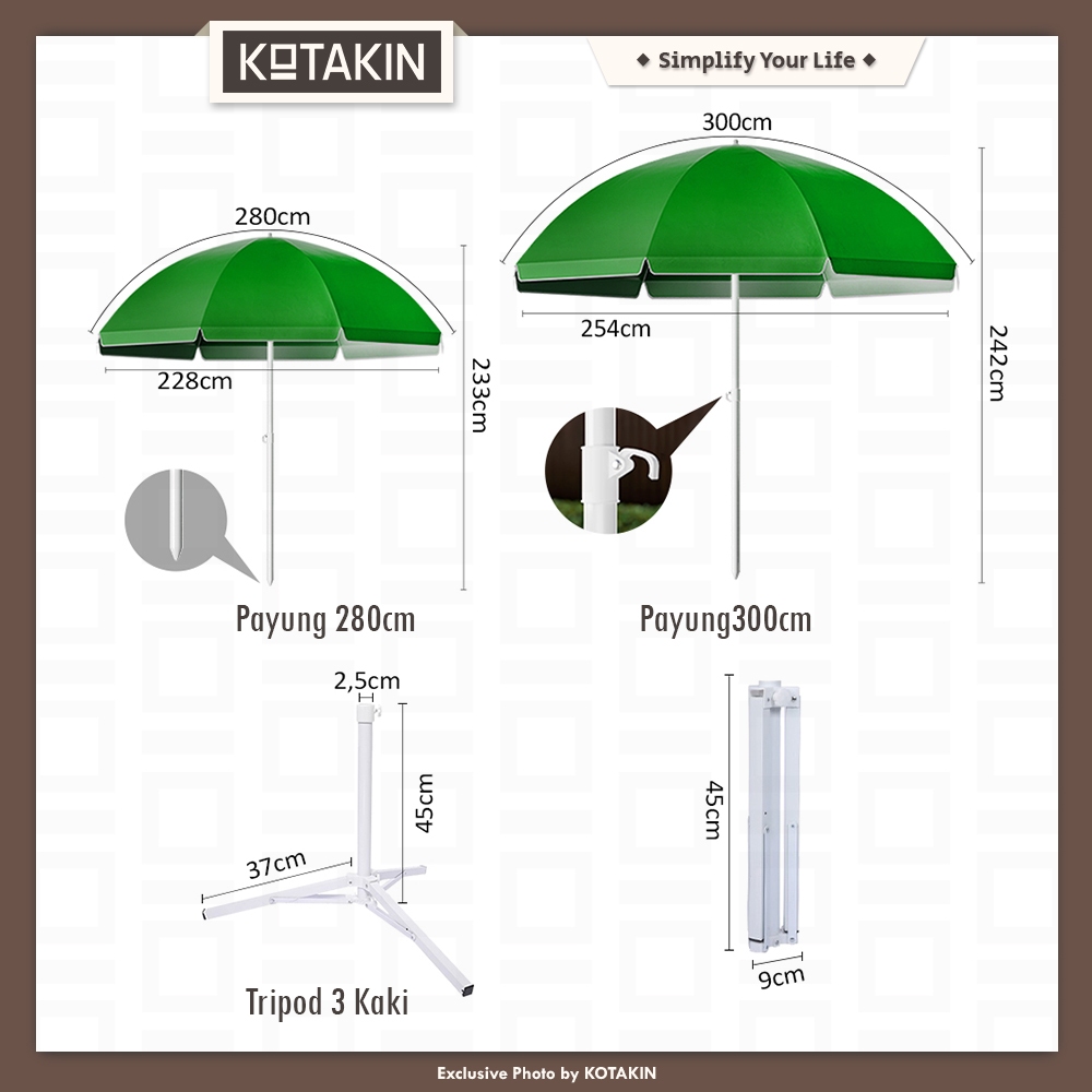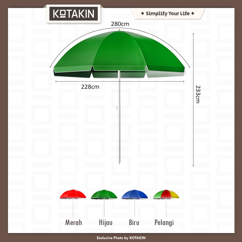KOTAKIN Payung Tenda Jualan 180cm 200cm 240cm 260cm 280cm 300cm Cafe Bazaar CFD Outdoor Parasol Anti UV Import
