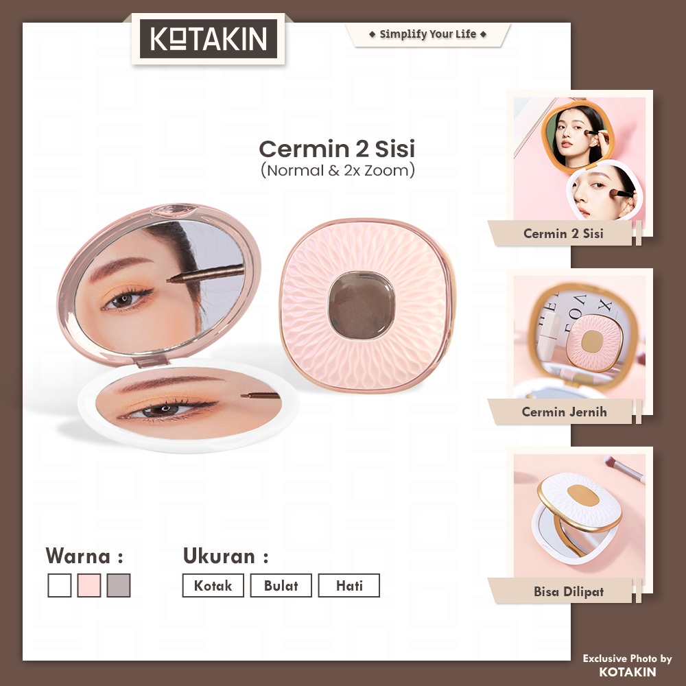 KOTAKIN Cermin Rias Lipat Zoom Perbesar Cocok Untuk Make Up Kecil Cocok Untuk Travelling 2 Sisi Premium Bagus