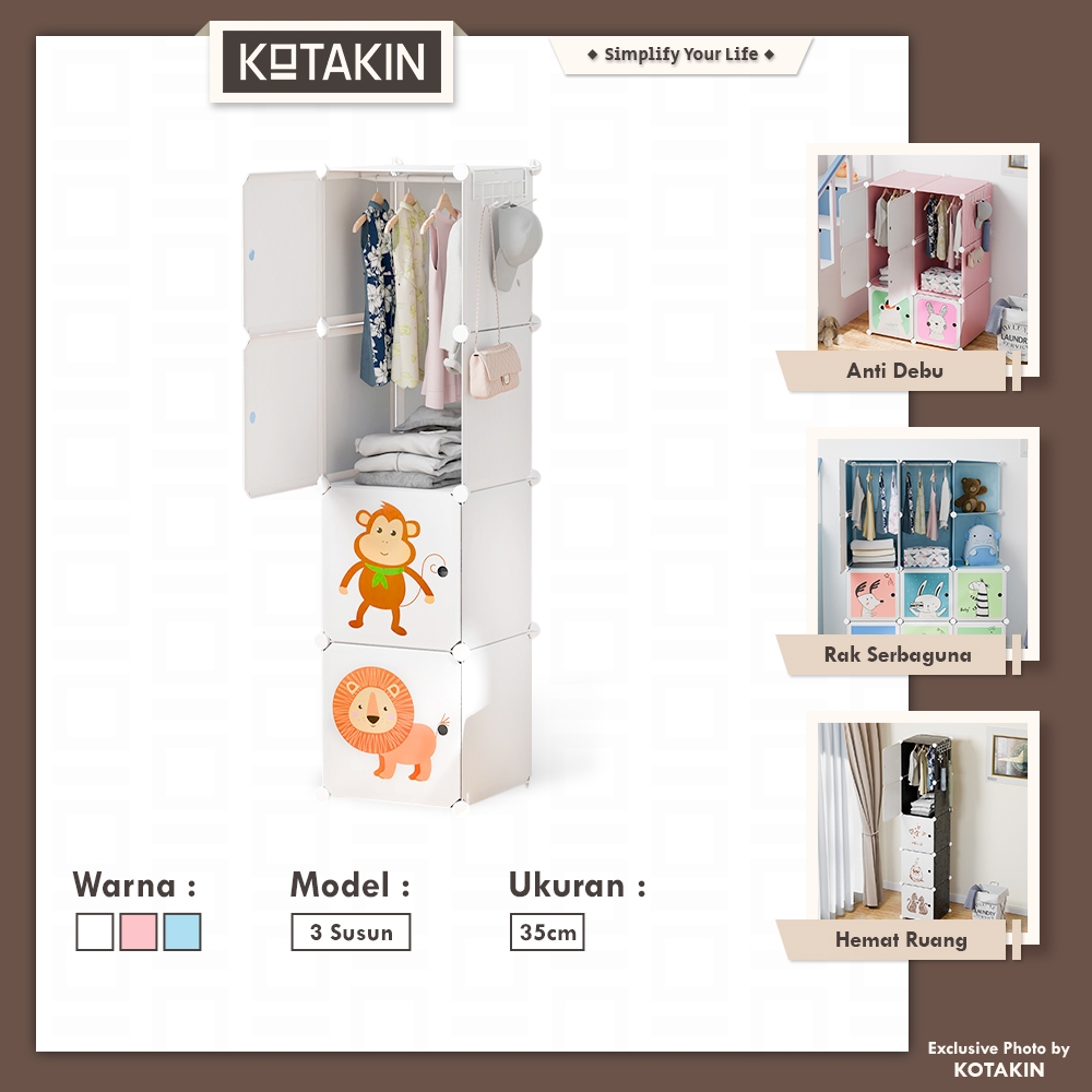KOTAKIN Lemari Baju Anak Bayi Plastik Rak 3 Susun Estetik Minimalis Premium Import Quality