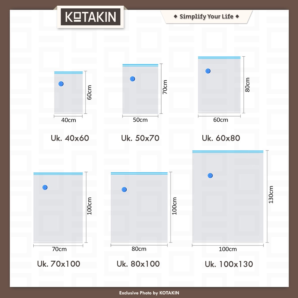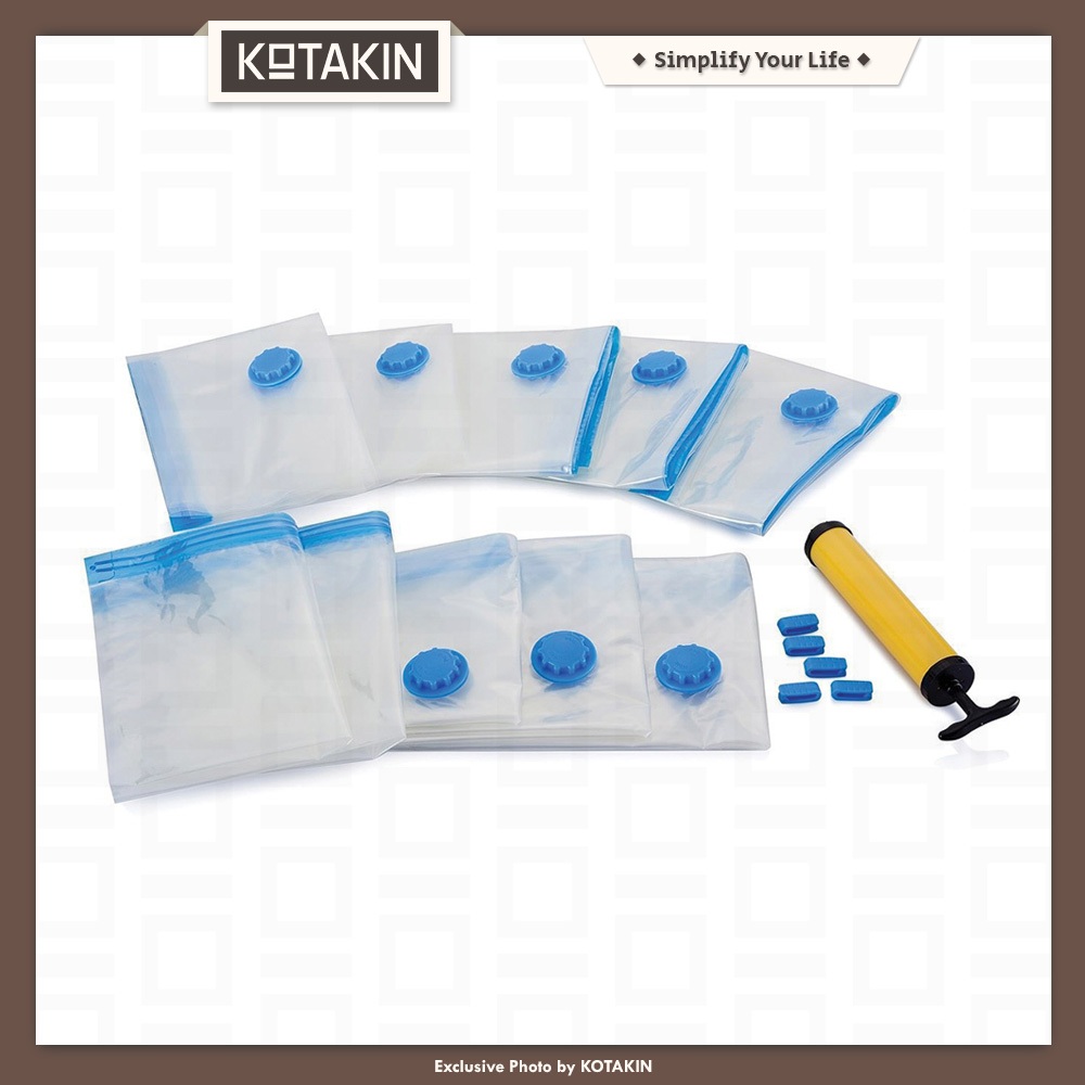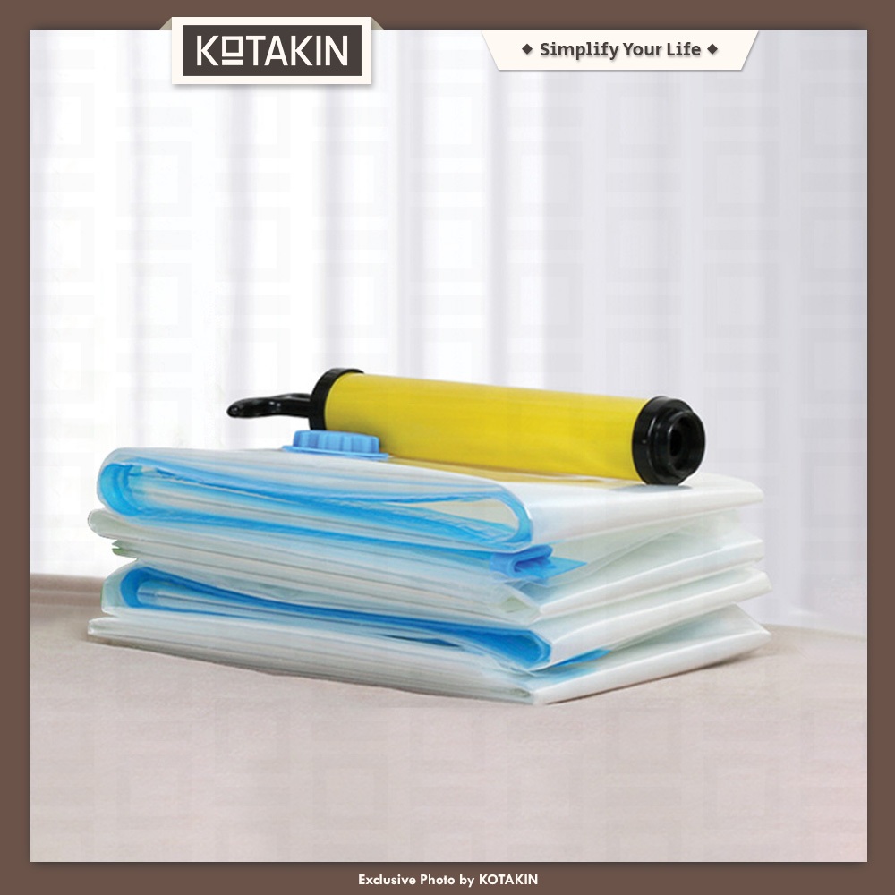 KOTAKIN Vacuum Bag Set 6Pcs Kantong Pakaian+Pompa Manual Travel Plastik Kompresi Vakum Baju Sprei Bed Cover