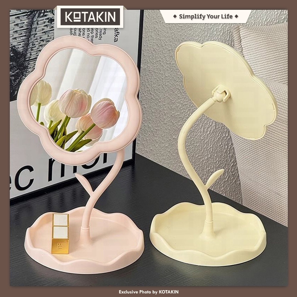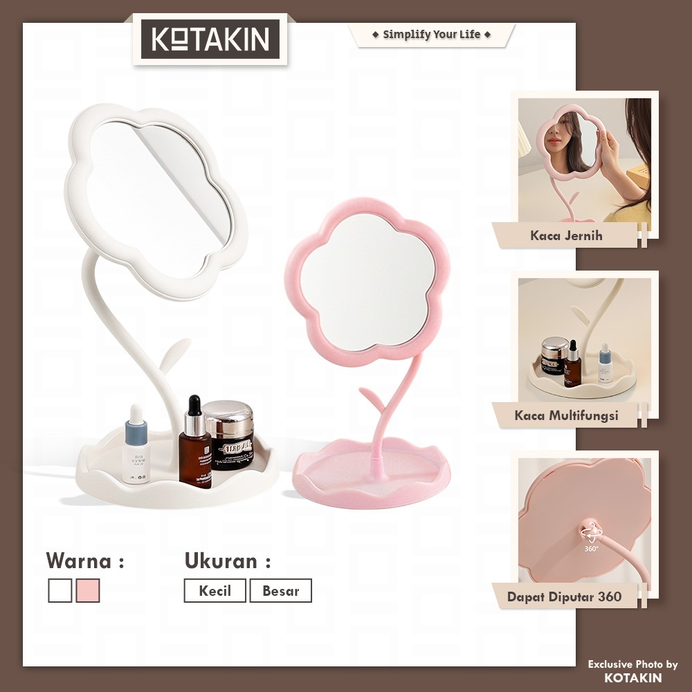 KOTAKIN Cermin Bunga Standing Mirror Makeup Cermin Aesthetic Flower Kaca Meja Rias Serbaguna