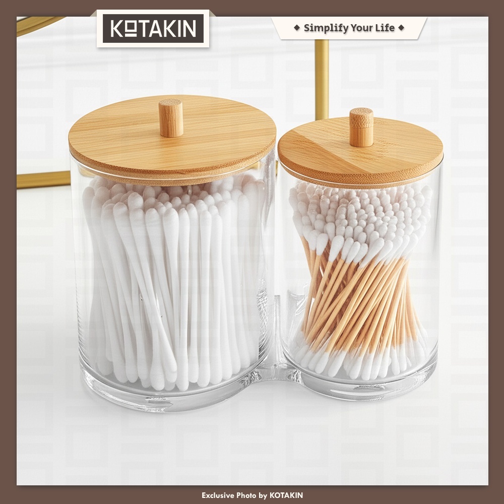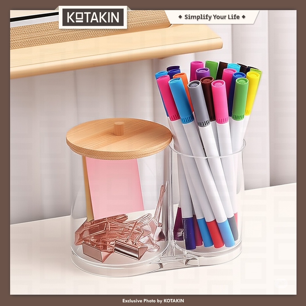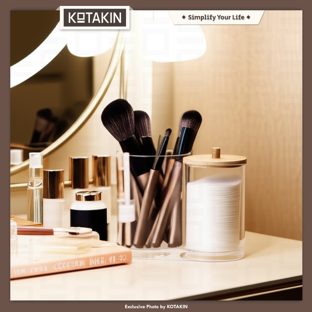 KOTAKIN Tempat Kapas Wajah Double Rak Brush Kosmetik Make Up Penyimpanan Cotton Bud Stationary Organizer Meja