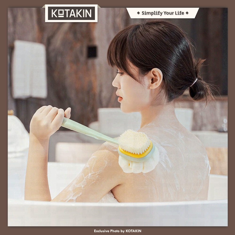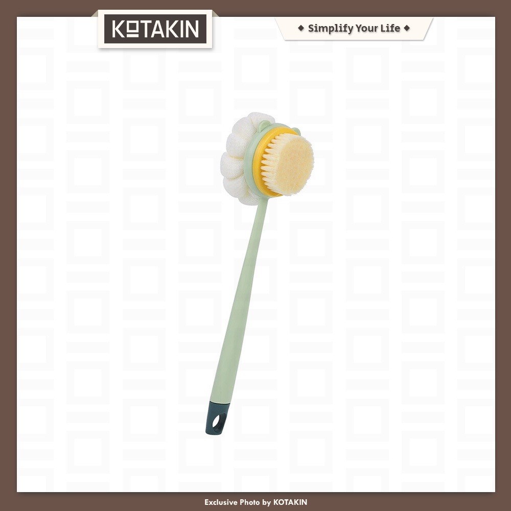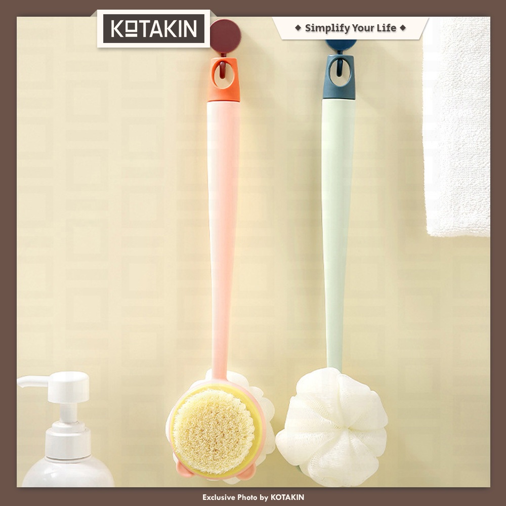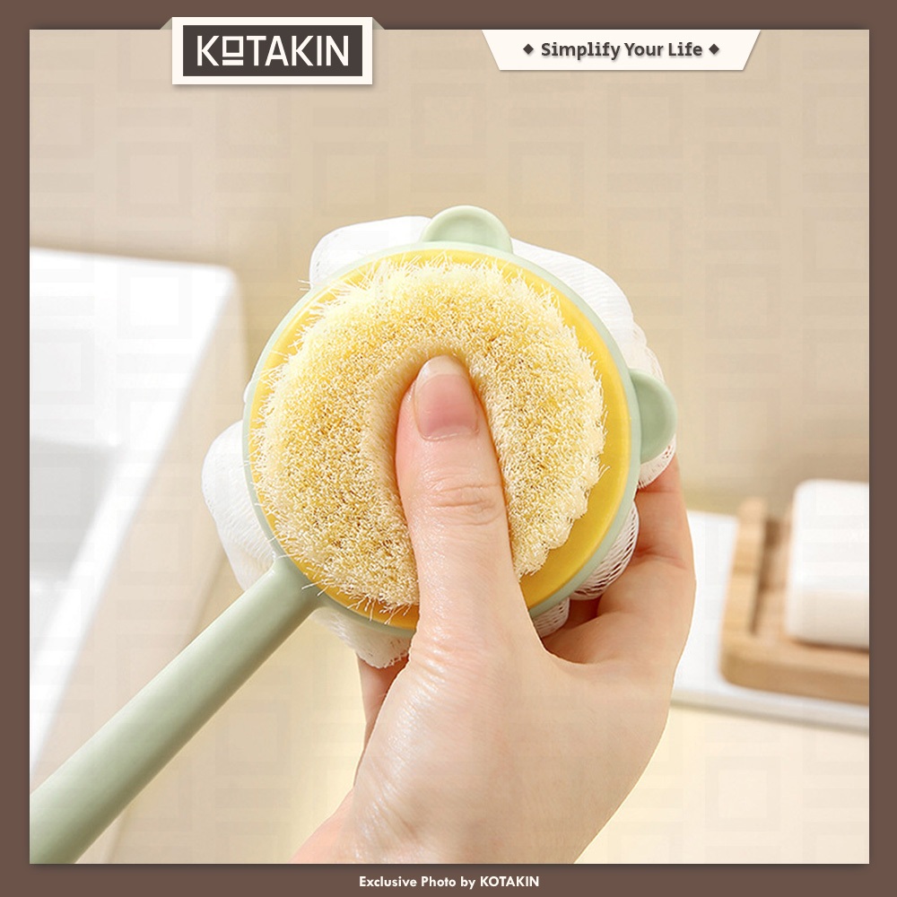 KOTAKIN Sikat Mandi Gosok Punggung 2in1 Shower Puff Scrub Bulu Spons Pembersih Badan Halus Lembut Penggosok Gagang Panjang Bathing Brush