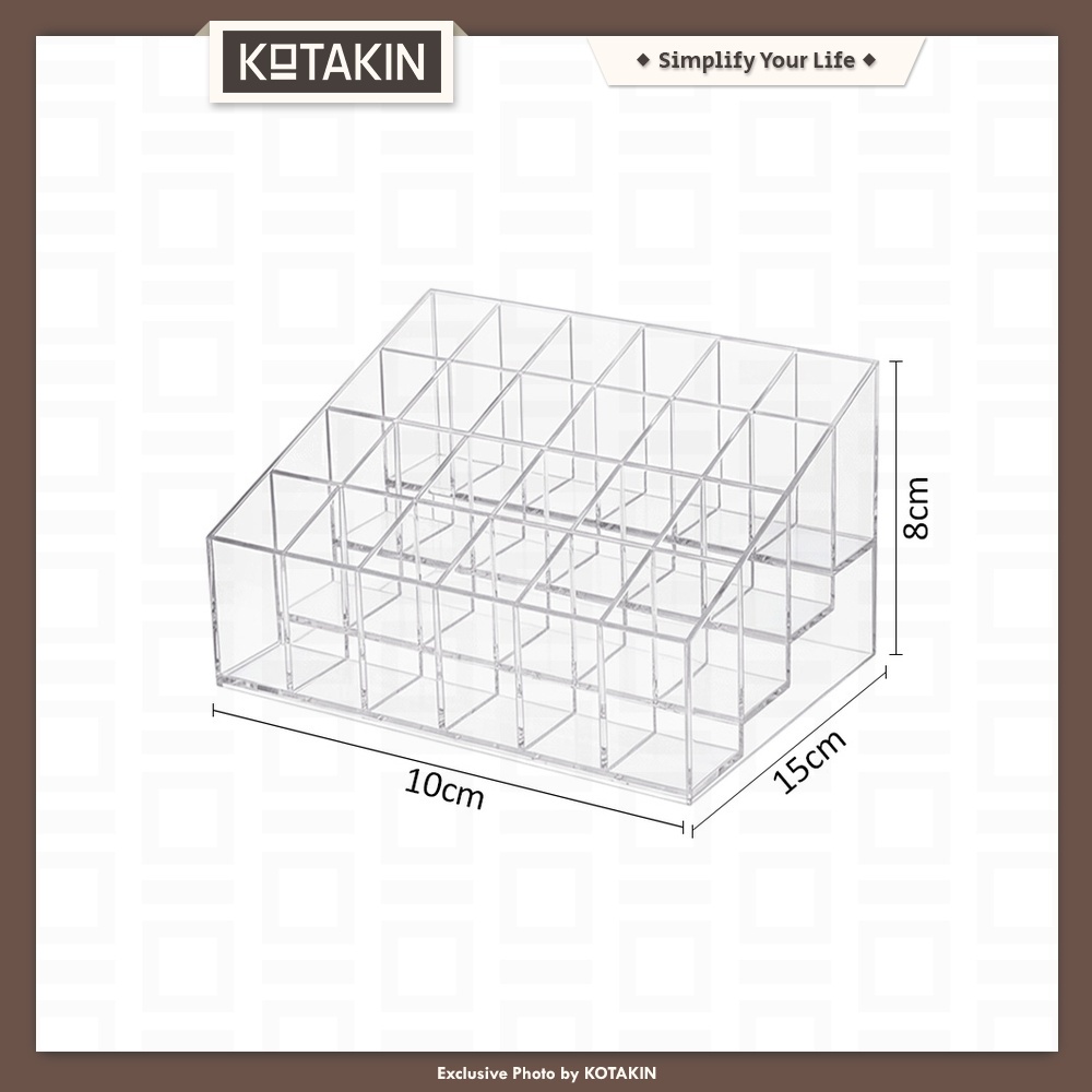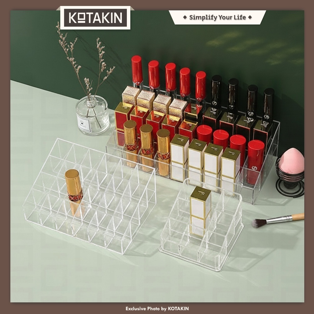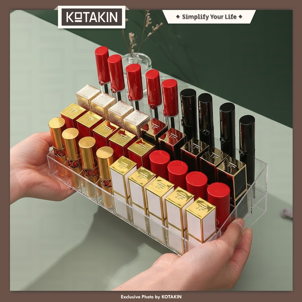 KOTAKIN Rak Akrilik Lipstik Wadah 40 Kotak 24 Grid Slot Liptint Lipcream Lipgolss Lipbalm Organizer Brush Make Up Kutek Nail Art