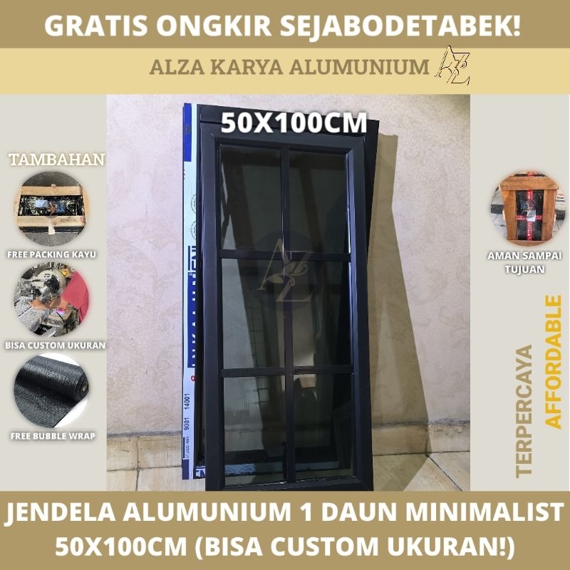 Jendela Ukuran 50X100 Casment ORNAMEN / Jungkit / Swing Alumunium 1 Daun Minimalist ORNAMEN Bisa Custom Ukuran