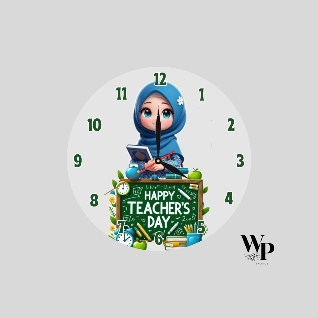 GIFT HAPPY TEACHER DAY / JAM DINDING KARAKTER GURU / HADIAH TERIMA KASIH GURU / DEKORASI RUANG KELAS