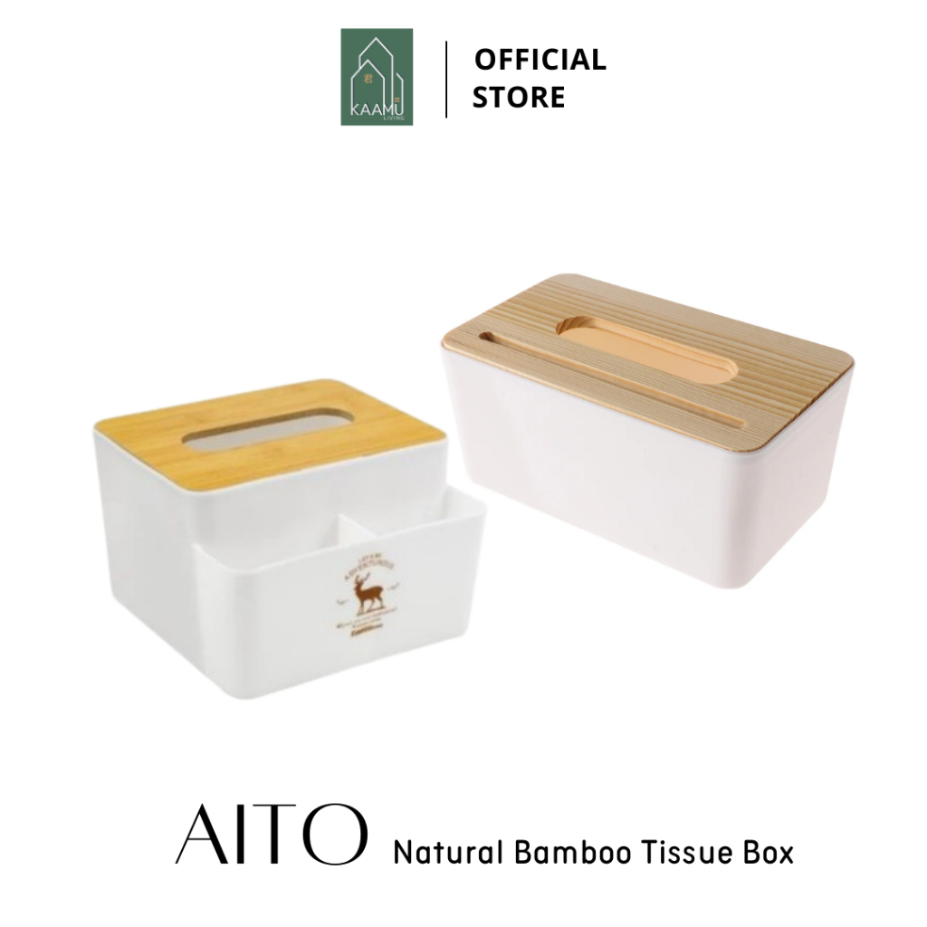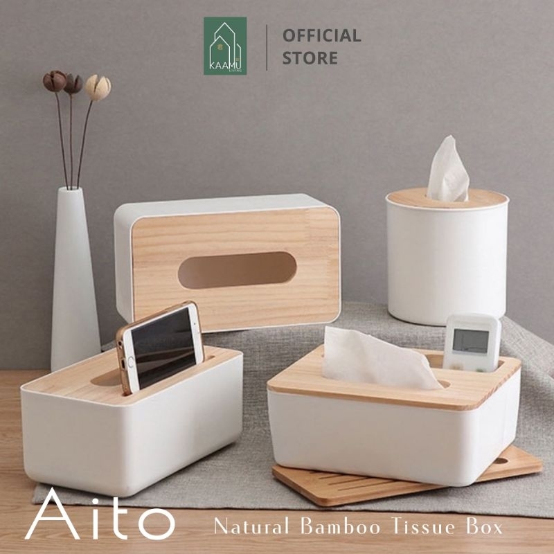 KAAMU LIVING - AITO | Tempat kotak tisu putih tutup kayu / wadah kotak tisu serbaguna tempat remot tempat hp multifungsi