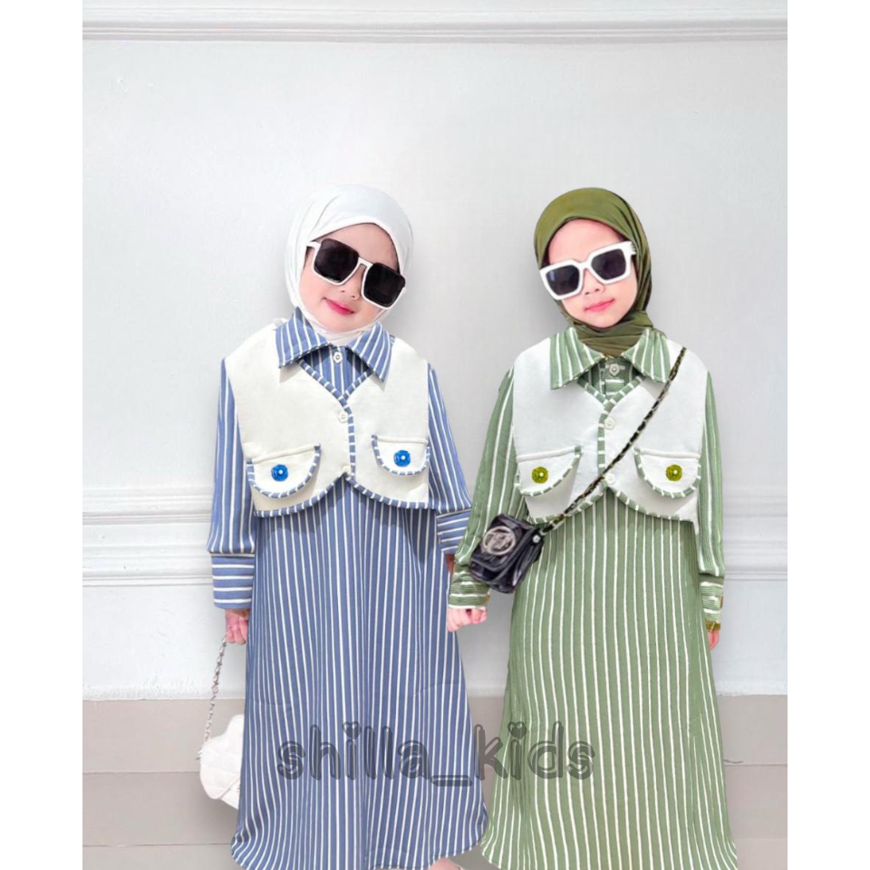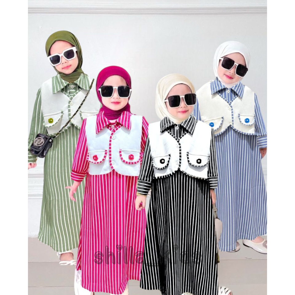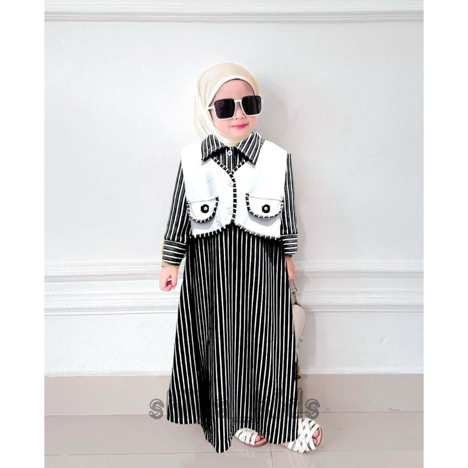 Gamis Muslim Model Rompi Anak Perempuan Lebaran Ala Korea Bahan Premium Usia 1-12 Tahun
