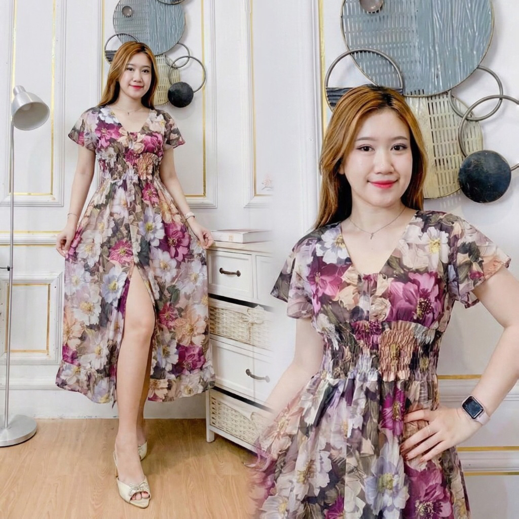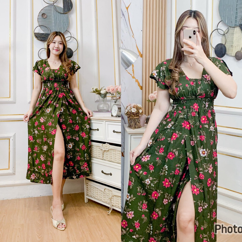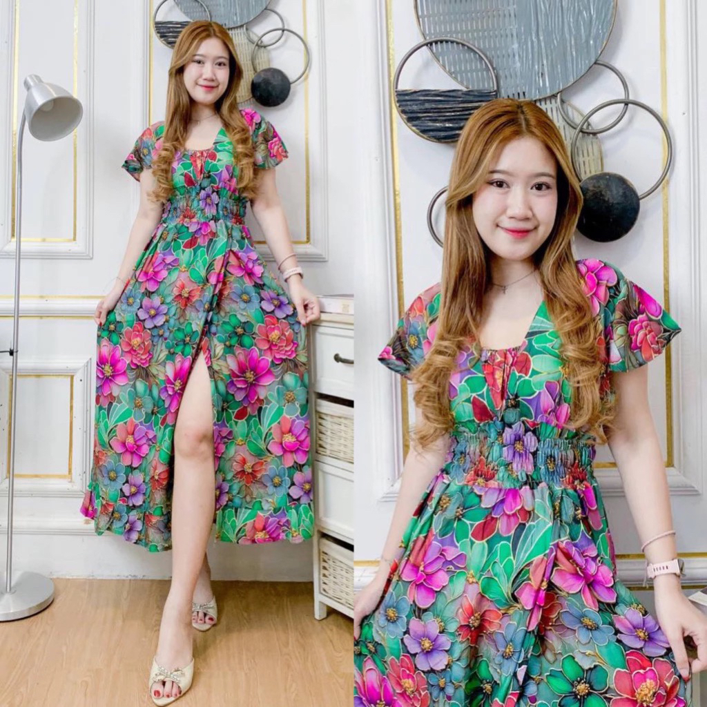 Daster Viral STARLA Daster Putri Bali Panjang Rayon Motif Kain Adem Lembut / Dress Bali Sexy Kerut Belah Samping