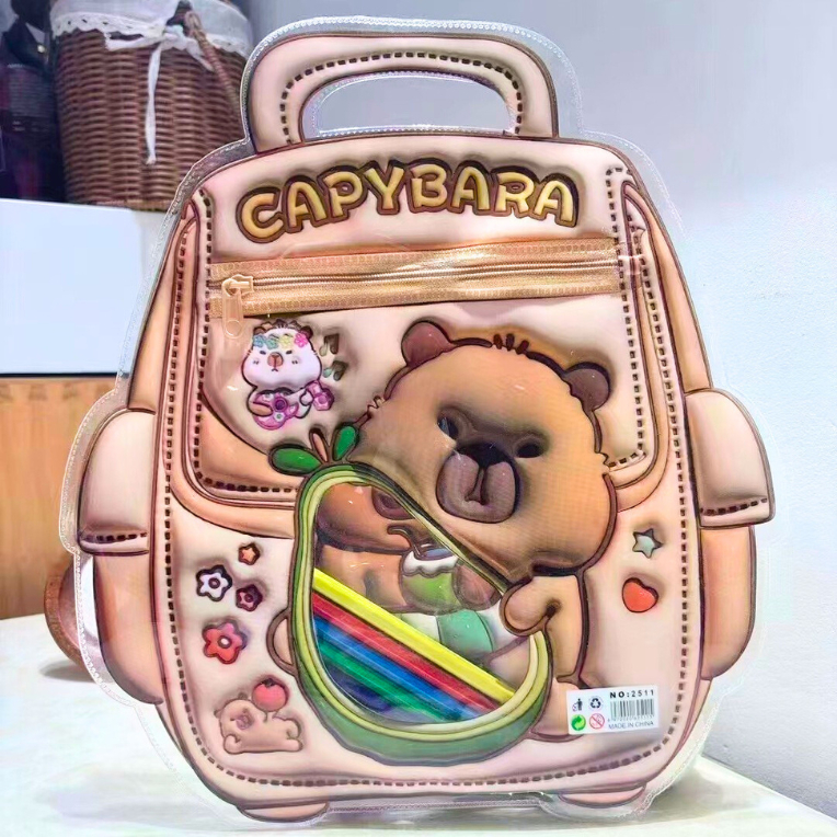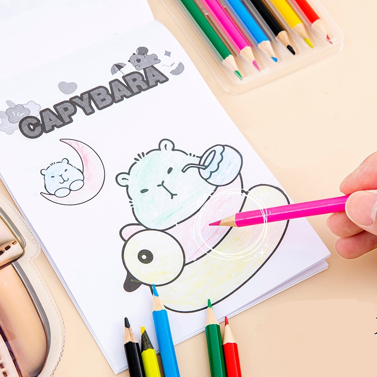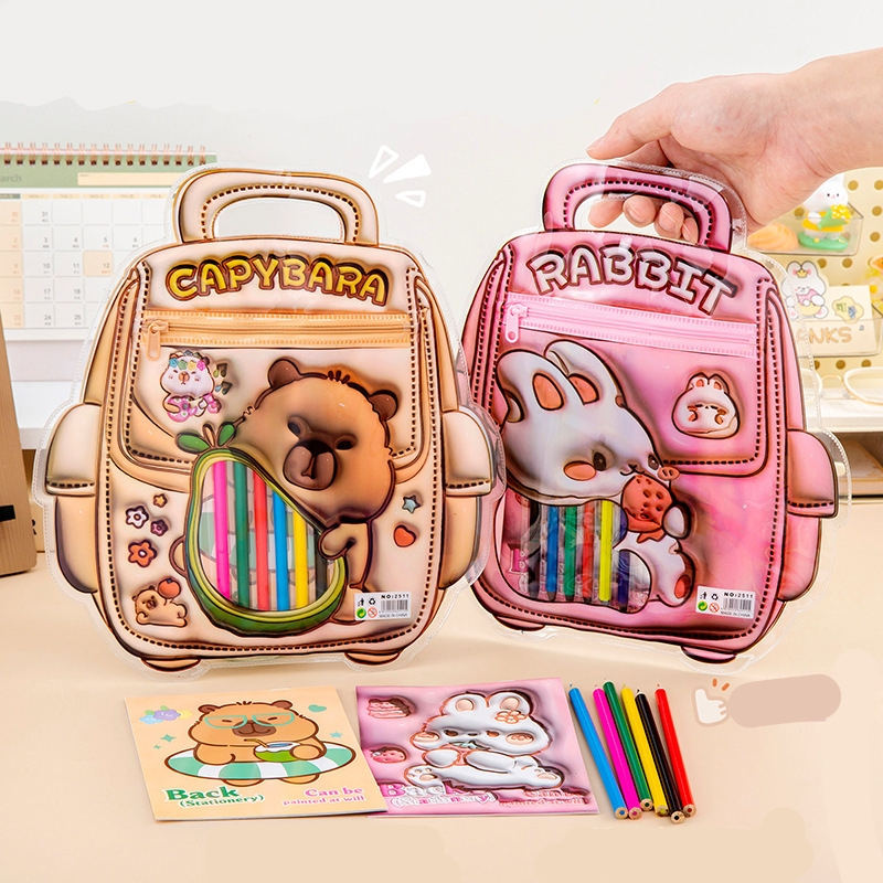 Set Mewarnai Tempat Pensil Warna 3D Hadiah Anak Kartun Labubu Capybara Lucu