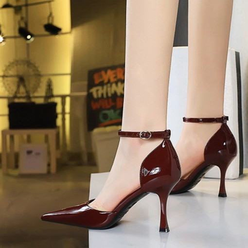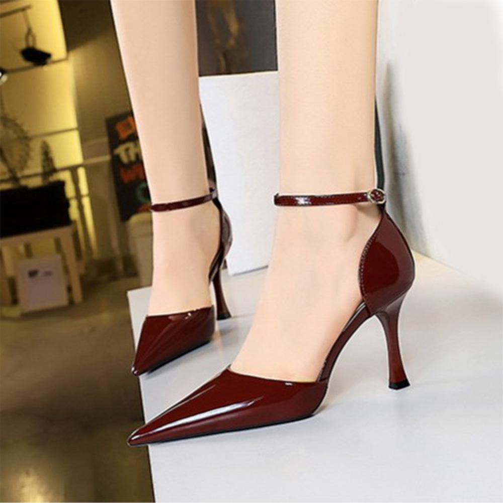 Sooday No. 1020 Maroon / Size 34-40 / 8.5cm / Sepatu hak tinggi tali / high heels cantik tali ankle - sepatu kuliah dan kerja - heels wisuda - sepatu kondangan