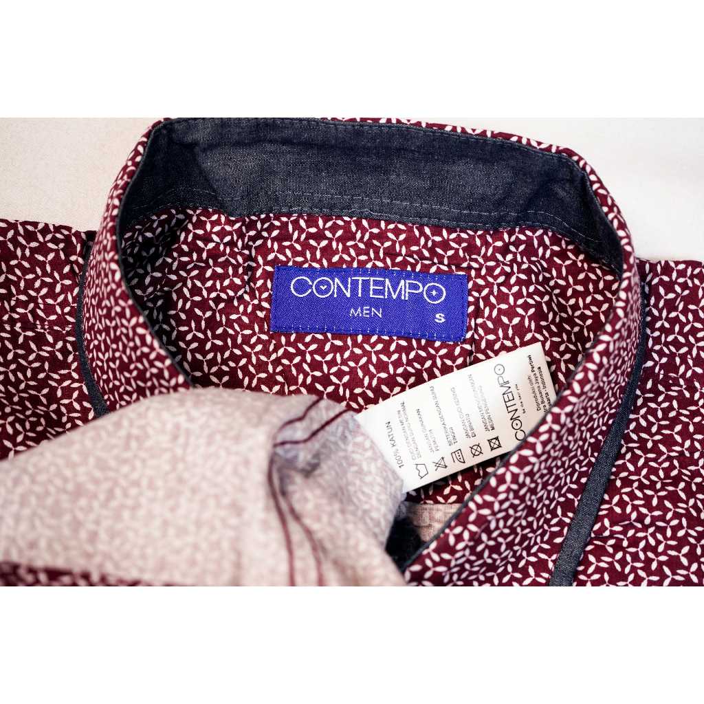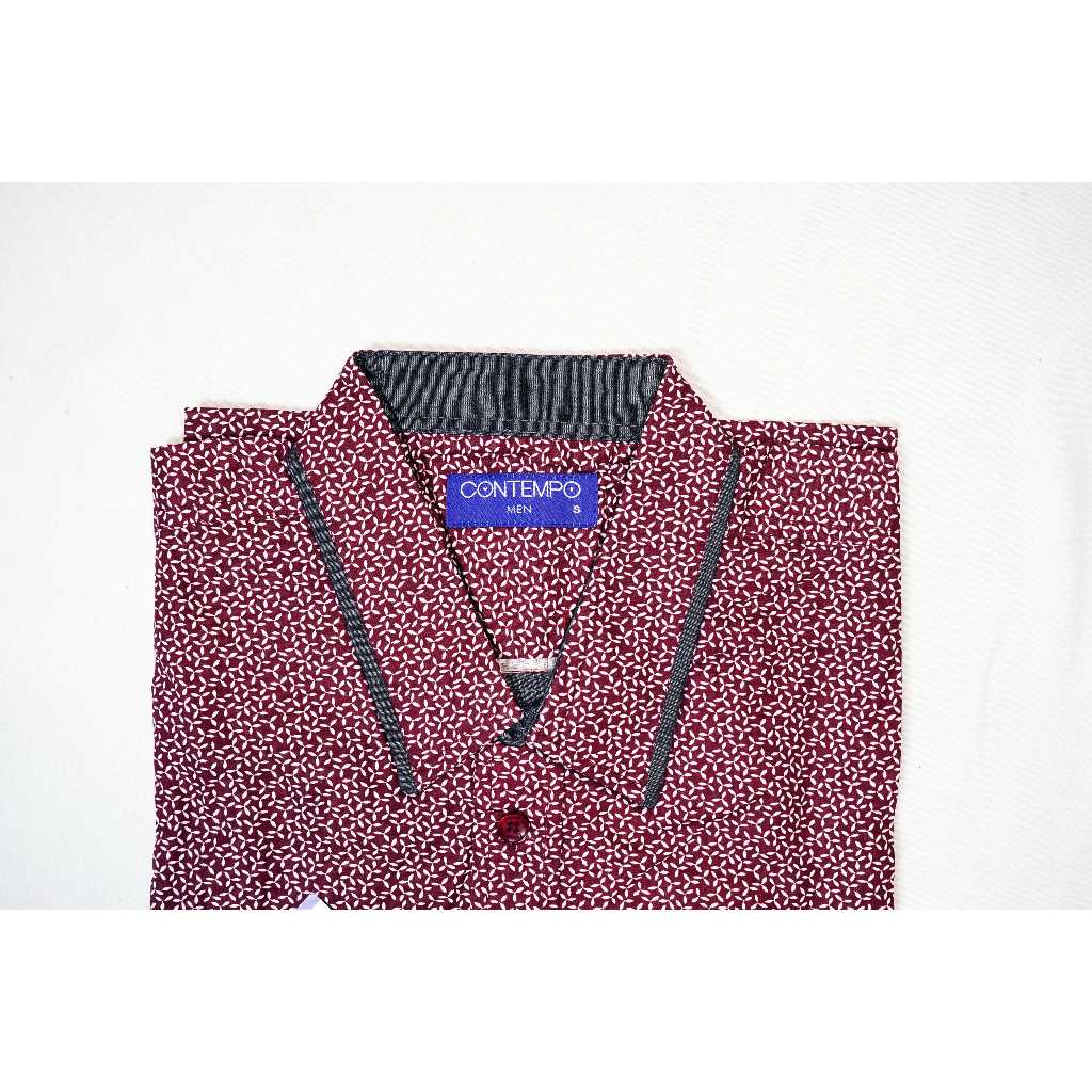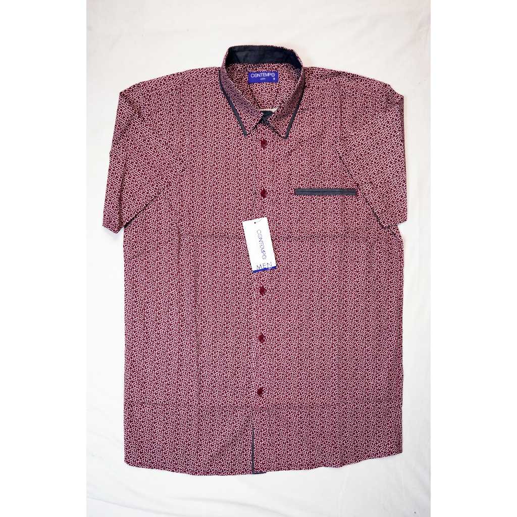 Kemeja Pria Kasual Lengan Pendek 100% CONTEMPO Reguler Fit Maroon Motif | Branded Matahari