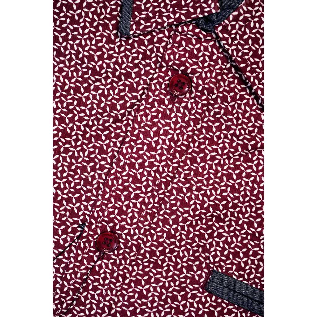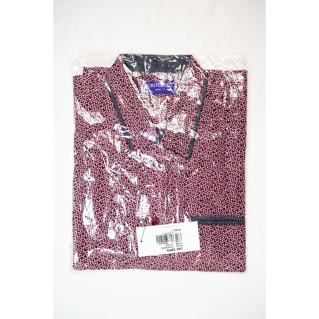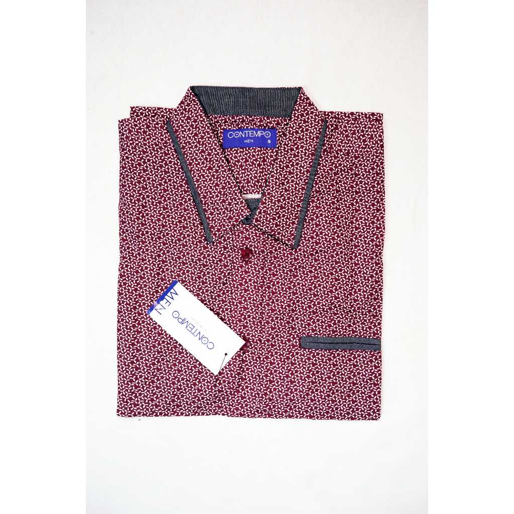 Kemeja Pria Kasual Lengan Pendek 100% CONTEMPO Reguler Fit Maroon Motif | Branded Matahari