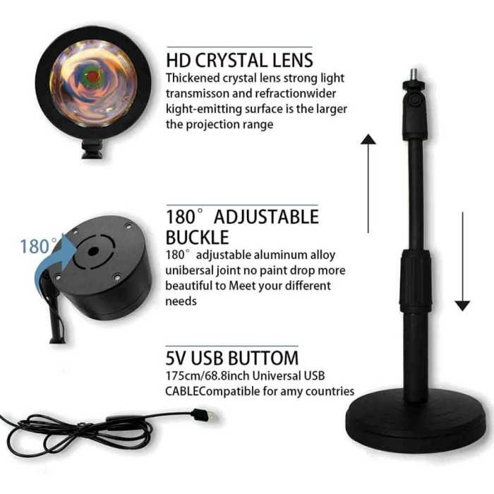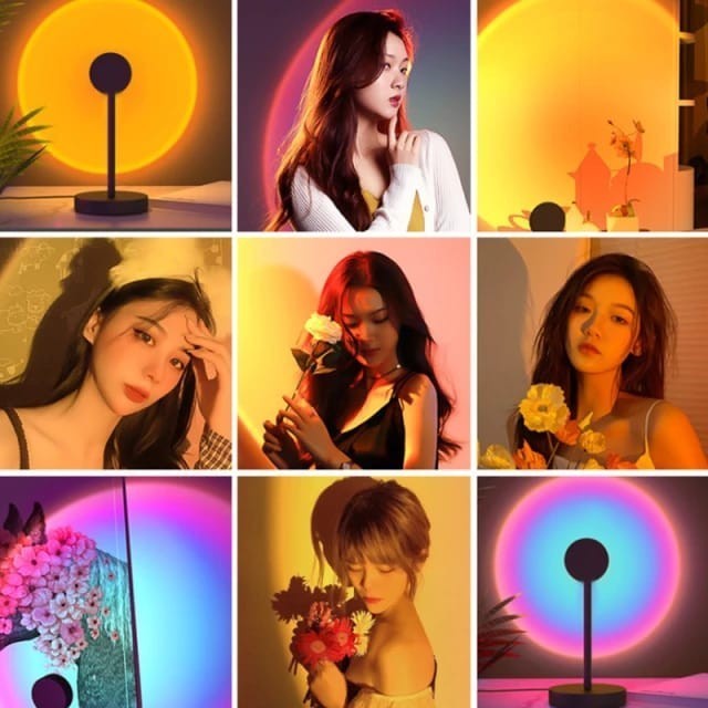 Lampu Sunset Lamp Efek Matahari LED Proyektor Aesthetic Sorot Tiktok Lightning Studio 4 Warna Kamar Projector
