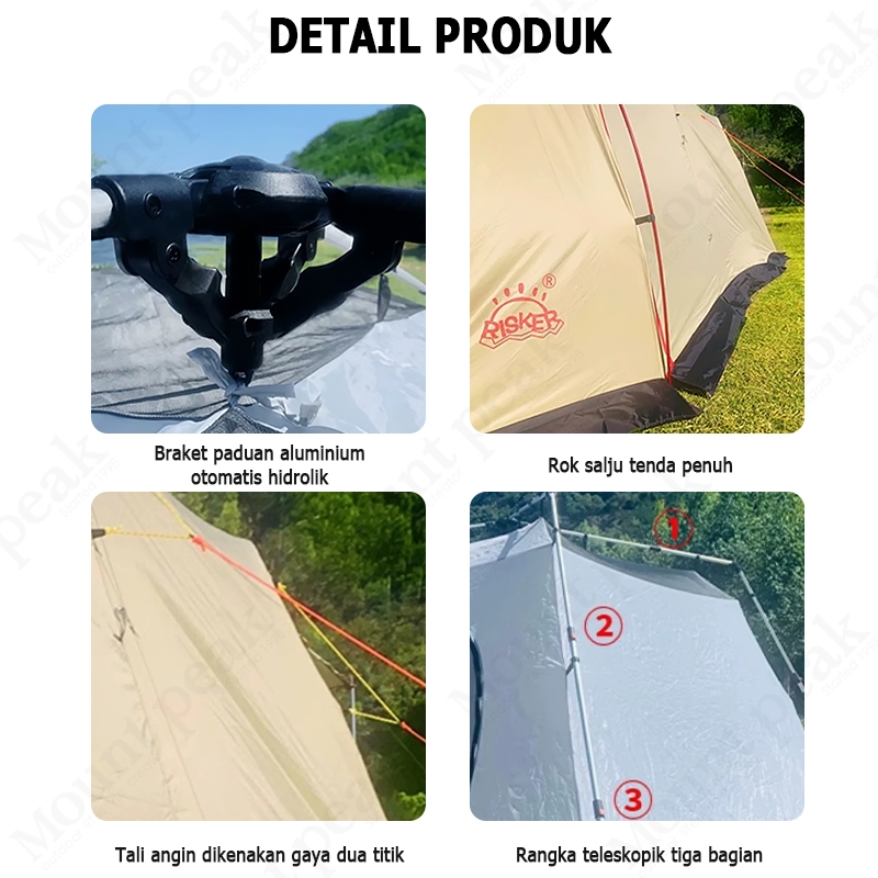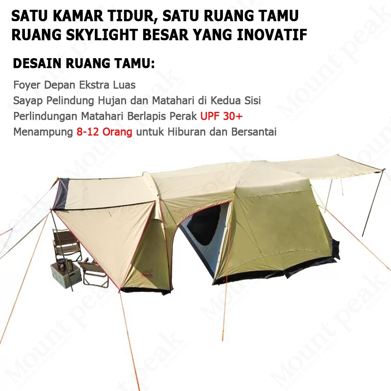 Tenda Terowongan Keluarga Aluminium, Tenda Camping Besar Dua Lapis Tahan Air, Ukuran 825×280×195 cm, Kuat, Nyaman & Mudah Dipasang