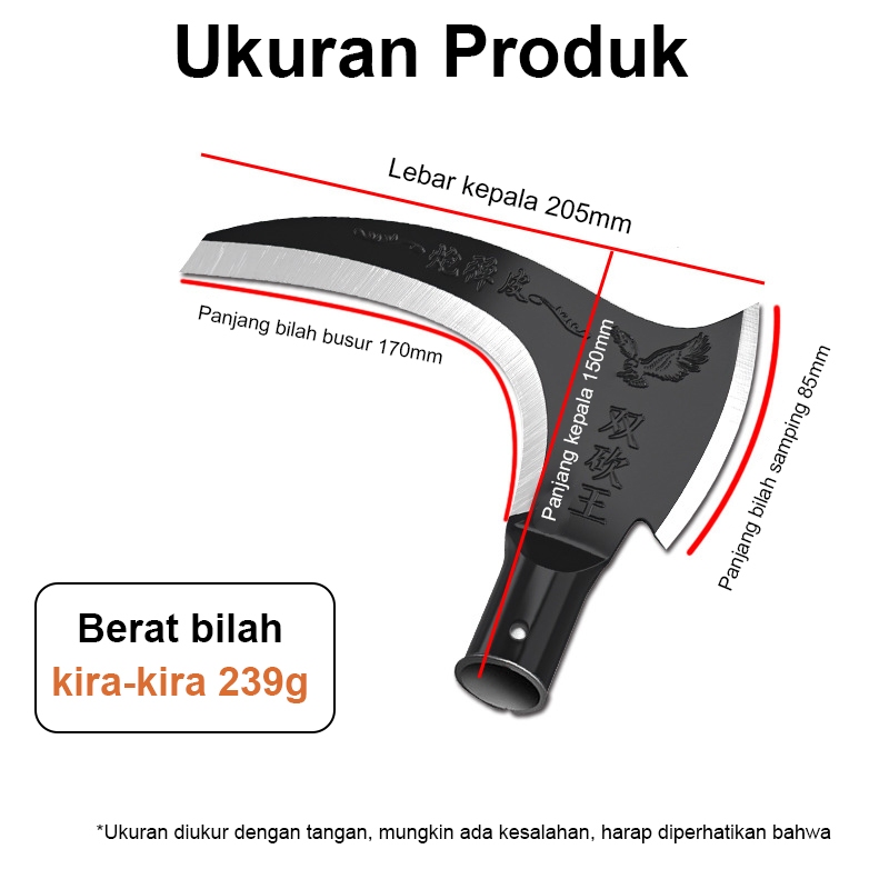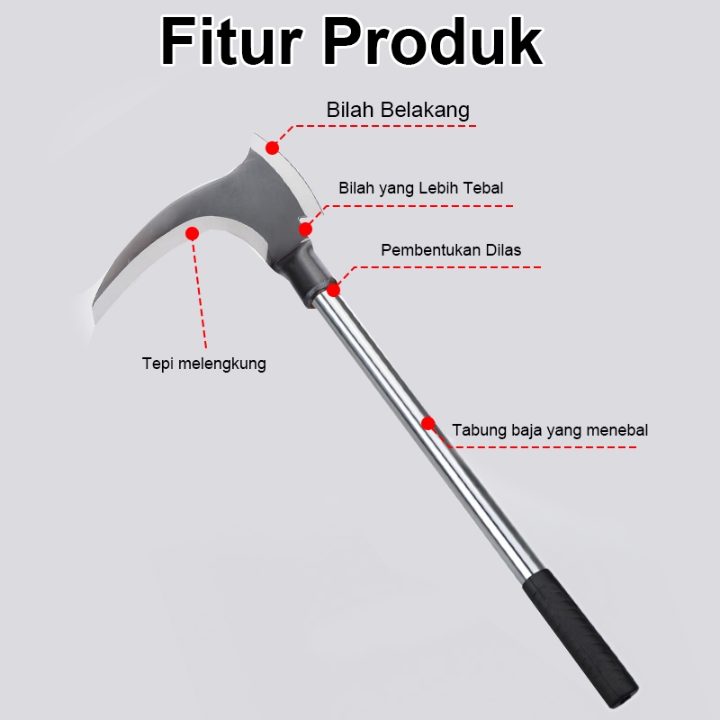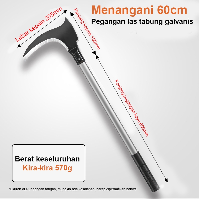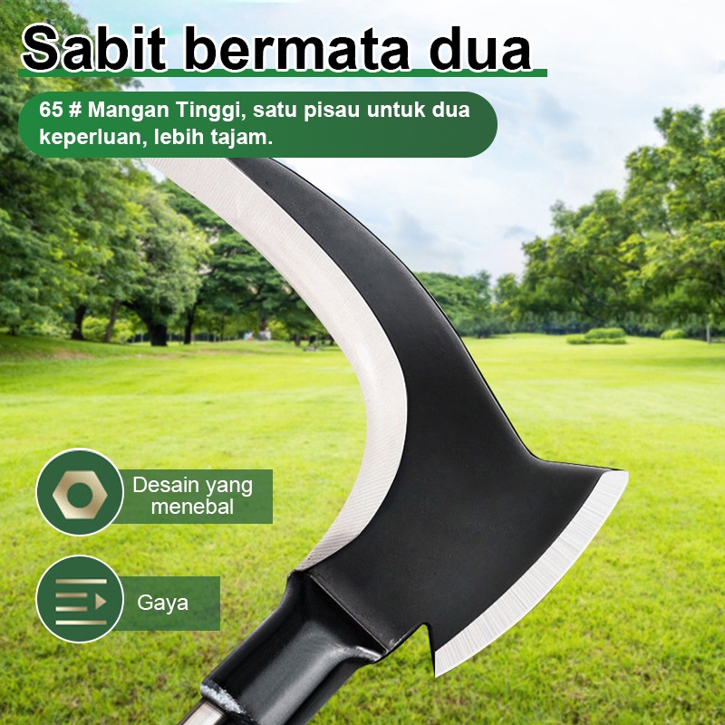 40/60/80cm Arit Rumput Baja Super Tajam/Sabit Arit Rumput Baja Asli Sabit Kapak Ganda Alat Pemotong Ranting Pohon Alat Panen Padi Potong Rumput