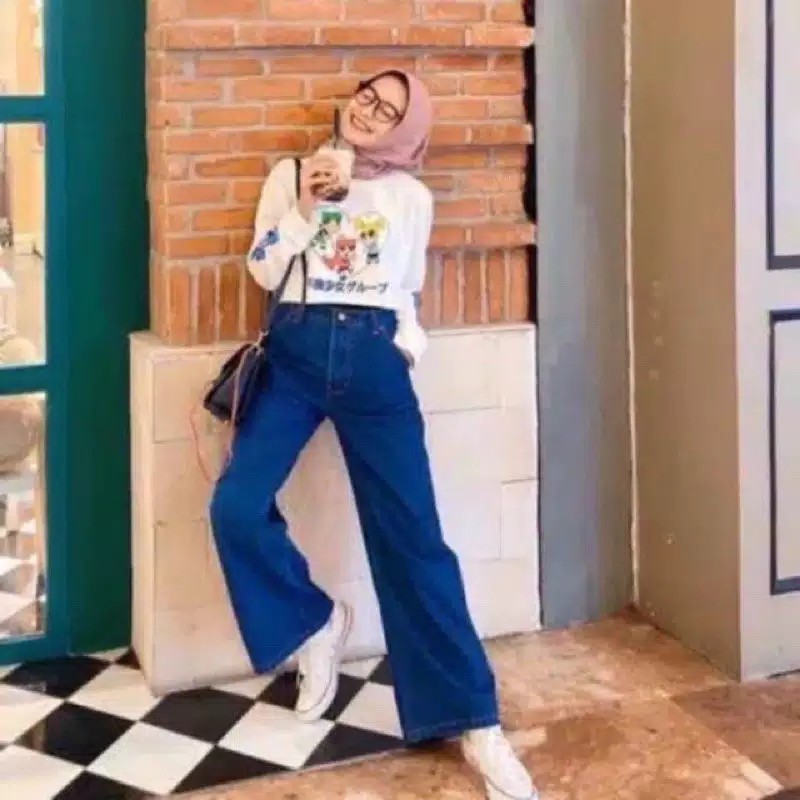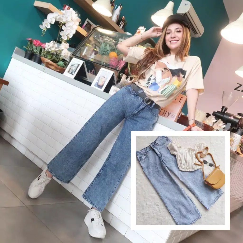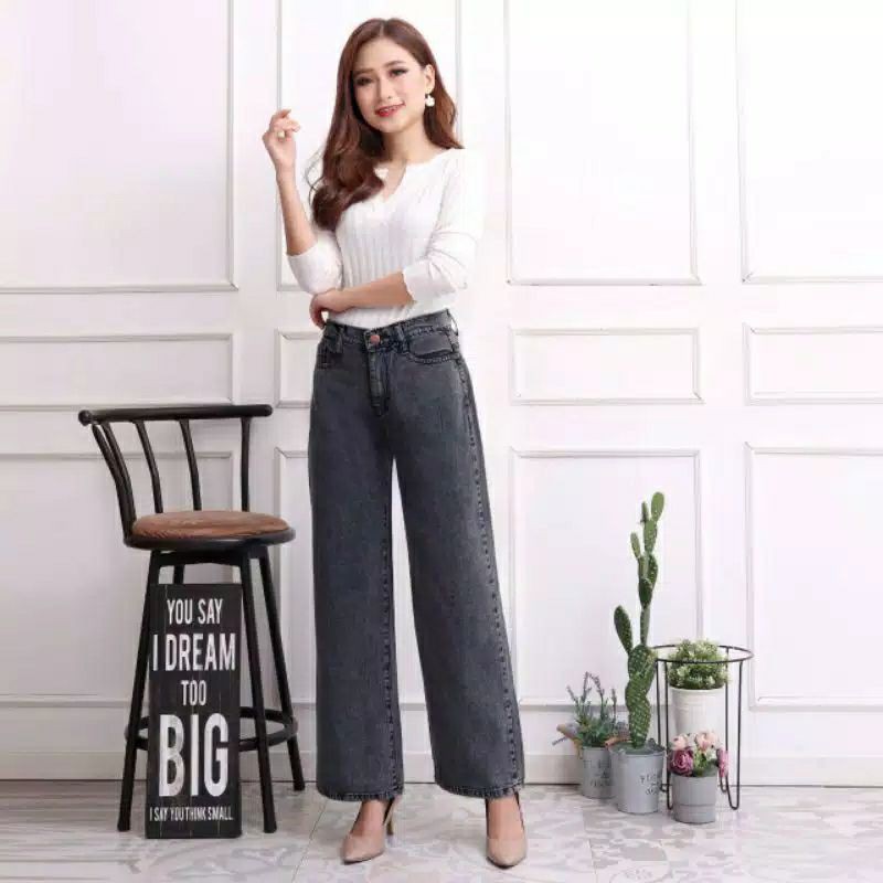 celana jeans kulot, high waist premium