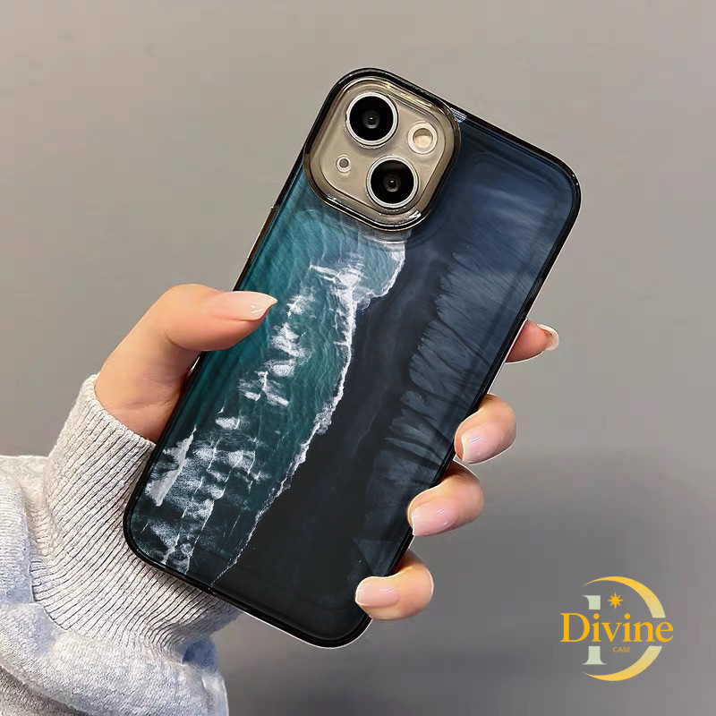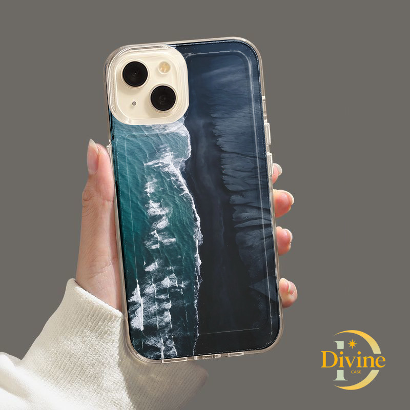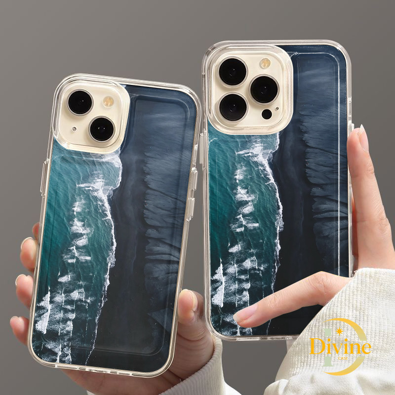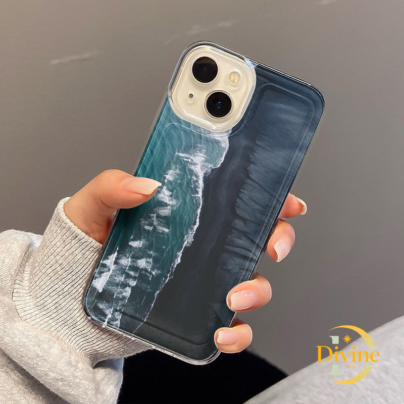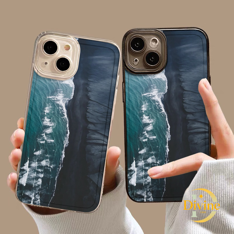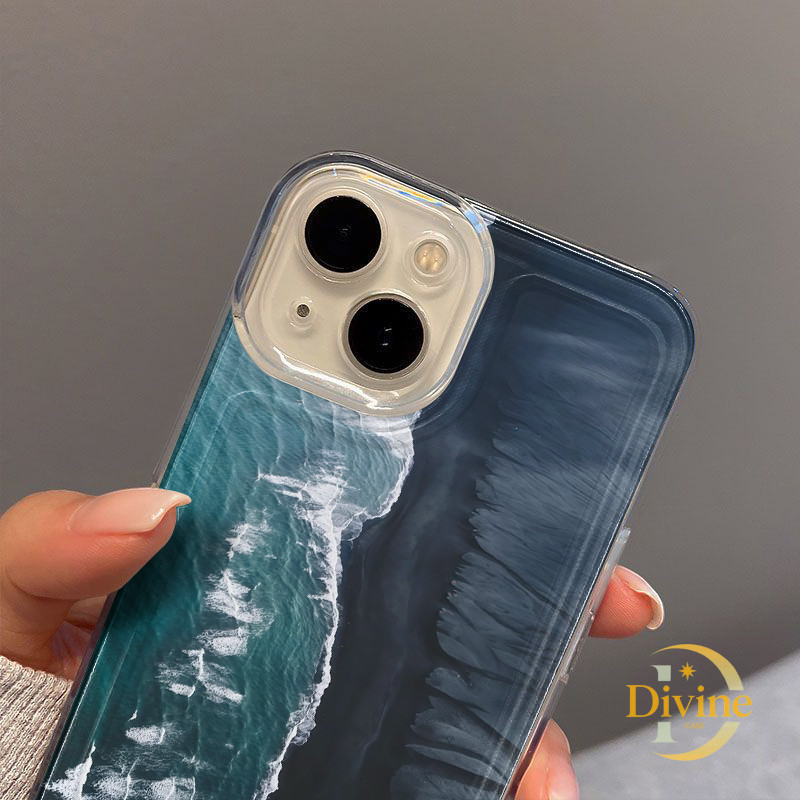 Casing IPhone Laut biru tua Transparan Soft Case Fashion Cocok untuk iPhone 11 12 13 14 15 16 Pro Max X XR XS Max 7Plus 8Plus-DE