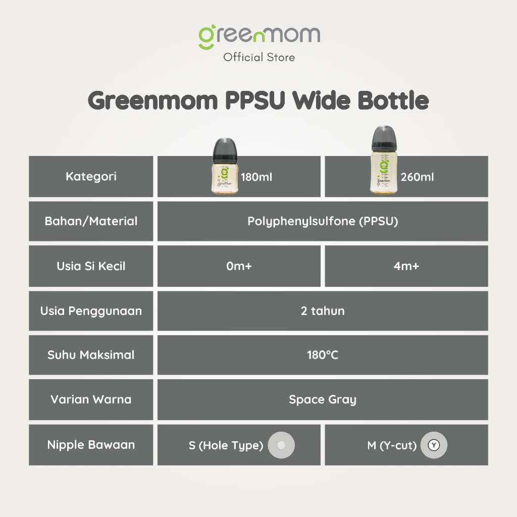 Greenmom PPSU Wide Bottle 260ml / Botol Paling Aman - Bebas Mikroplastik / Anti-kolik / Brand Korea