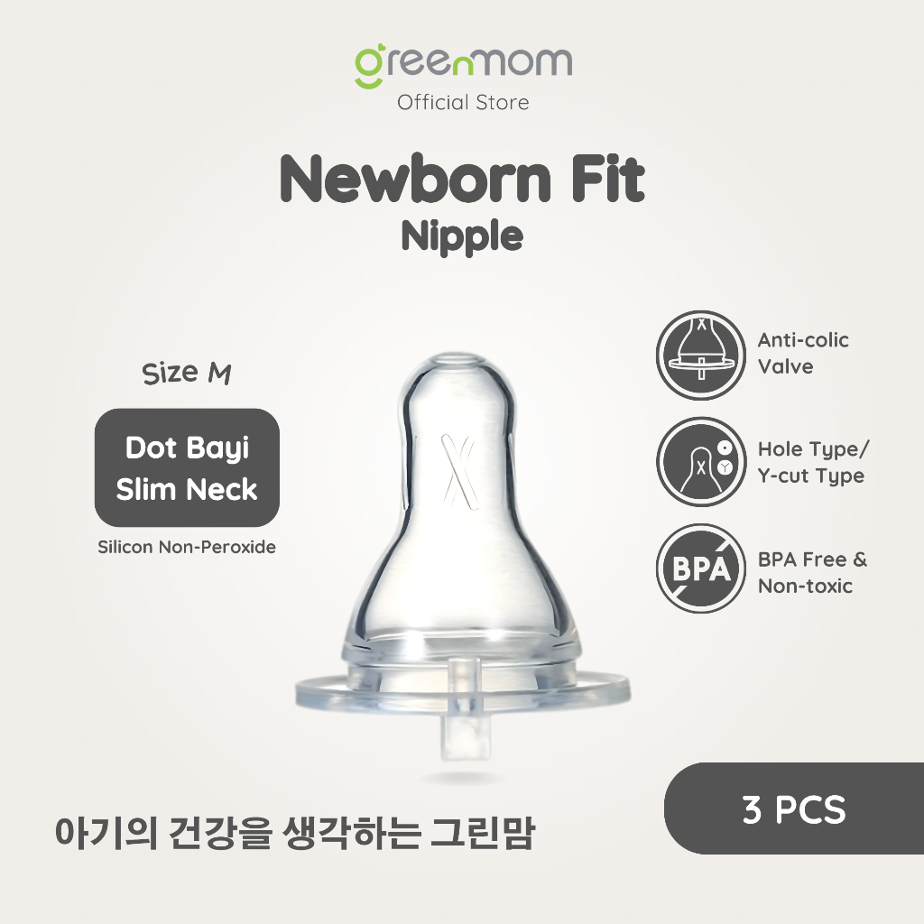 Greenmom Newborn Fit Nipple M (4m+) 3pcs / Dot Aman & Nyaman - Silikon Premium / Anti-kolik / Brand Korea