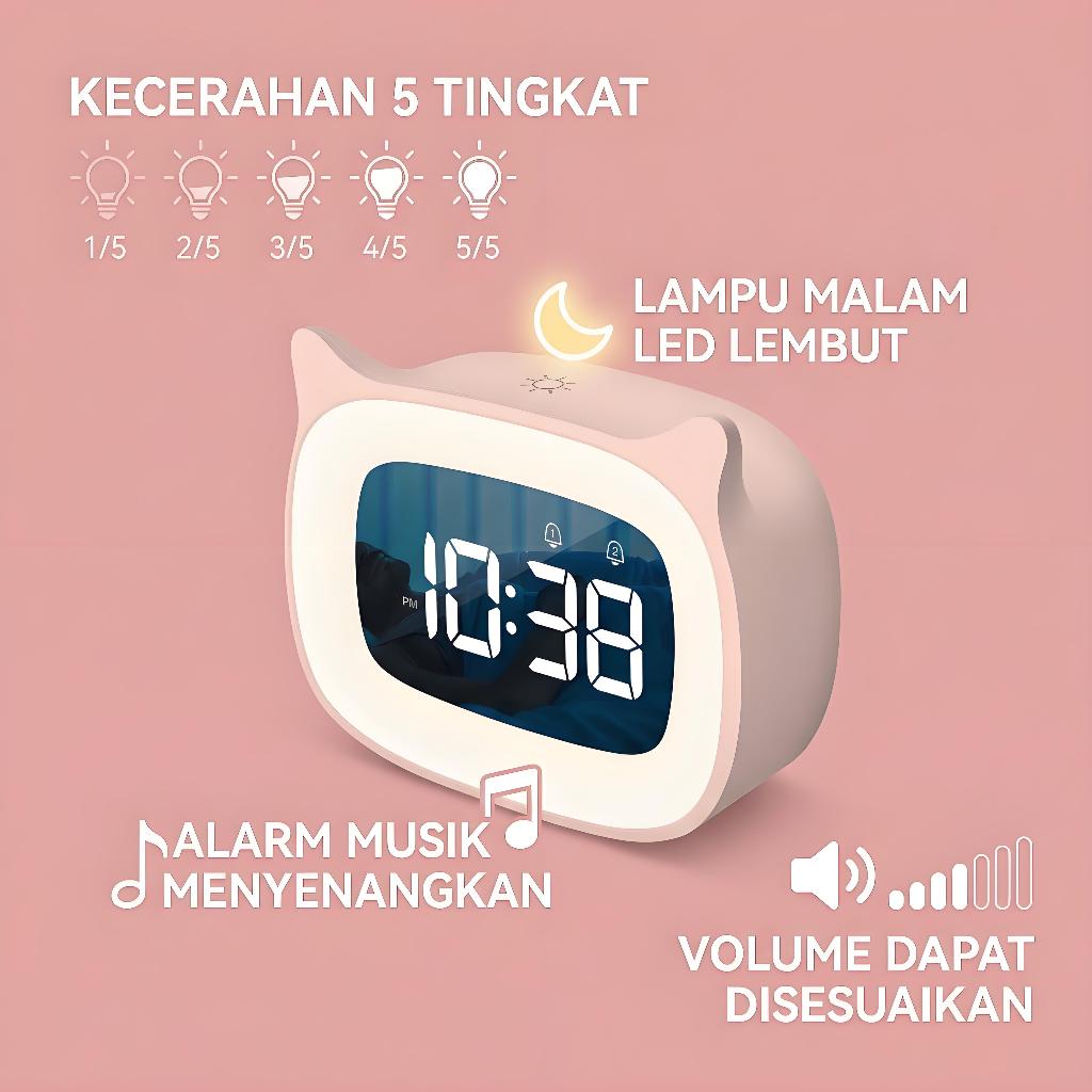 Jam Dinding Digital LED /Jam Digital Untuk Kamar Tidur /Kids Alarm Jam Dengan Cahaya Malam & 18 Nada Dering