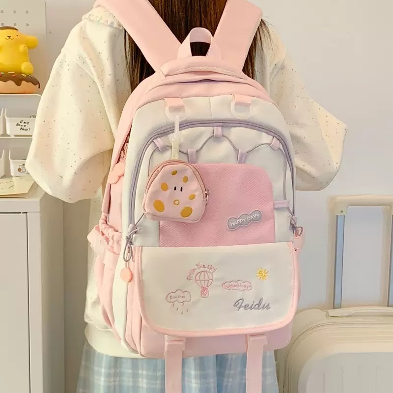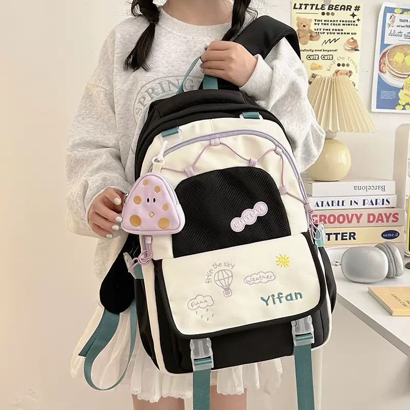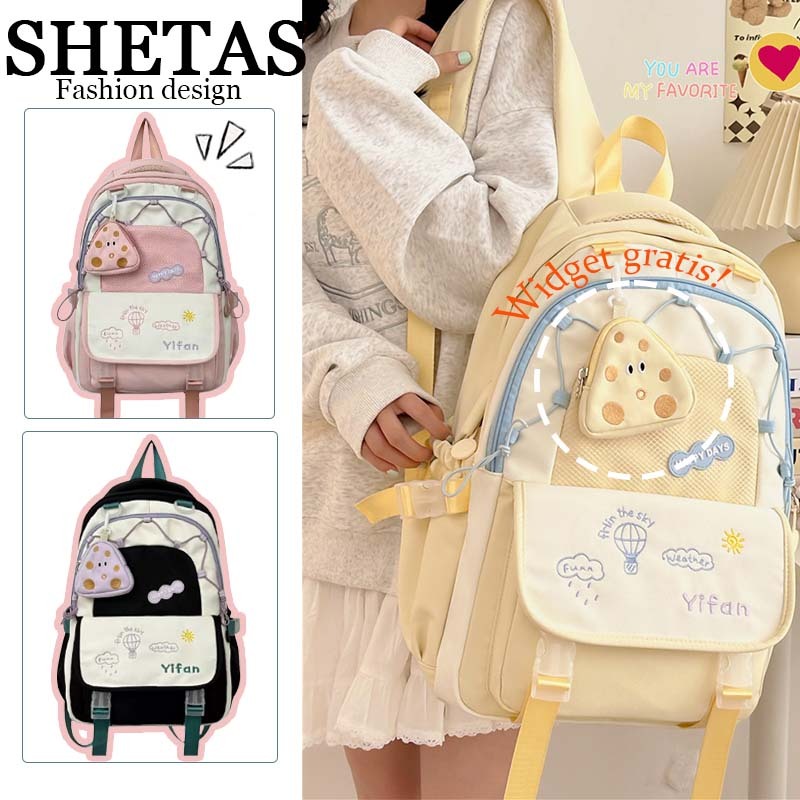 【SHETAS】Tas Sekolah Berkapasitas Besar Tas Bahu Siswa Perempuan Kuliah Tas Ransel Laptop Gadis Lucu Wanita Korea Import Fashion Backpack
