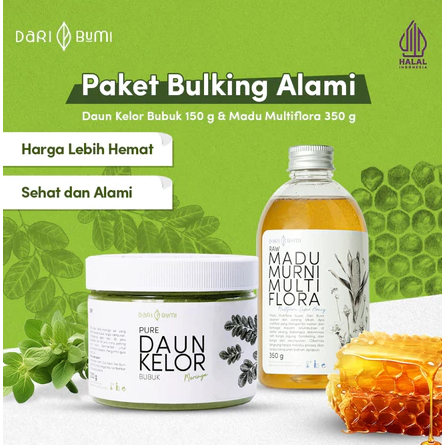 Dari Bumi Paket Bulking Alami Daun Kelor Moringa Bubuk Dan Madu Murni Gram Varian Raw Honey Asli