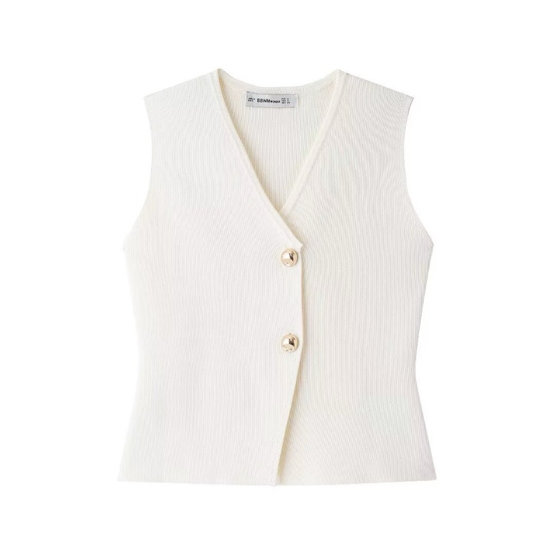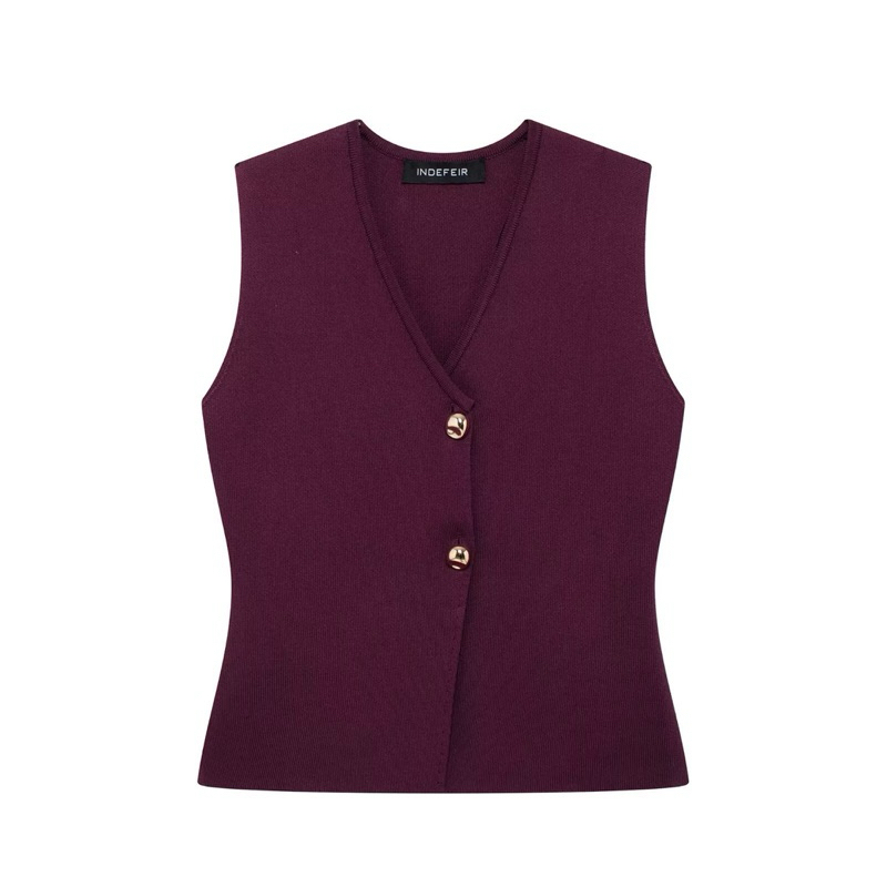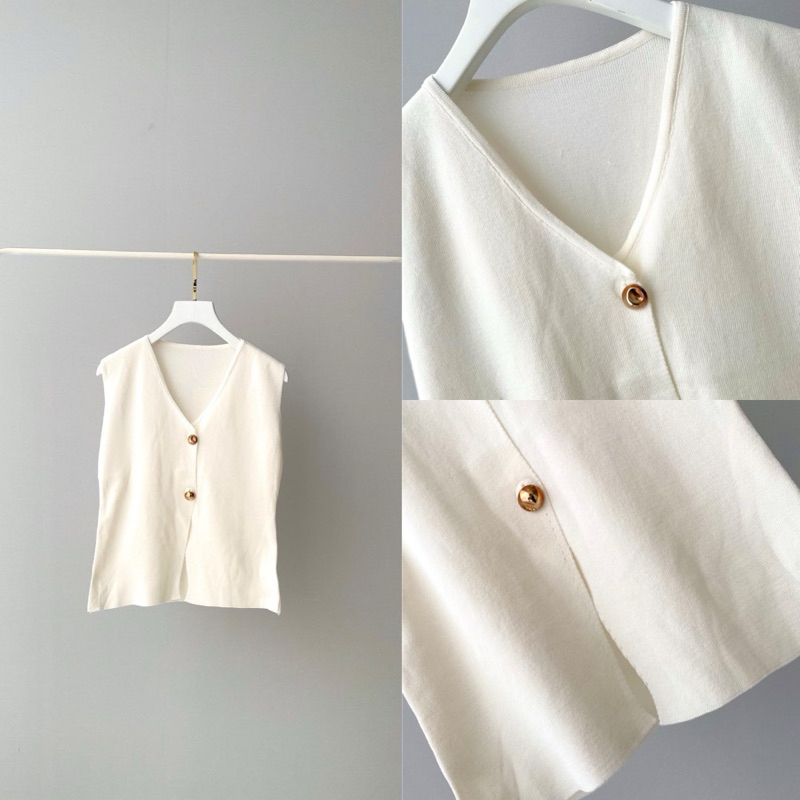 RIb Knit vest atasan rompi wanita maroon white S M L