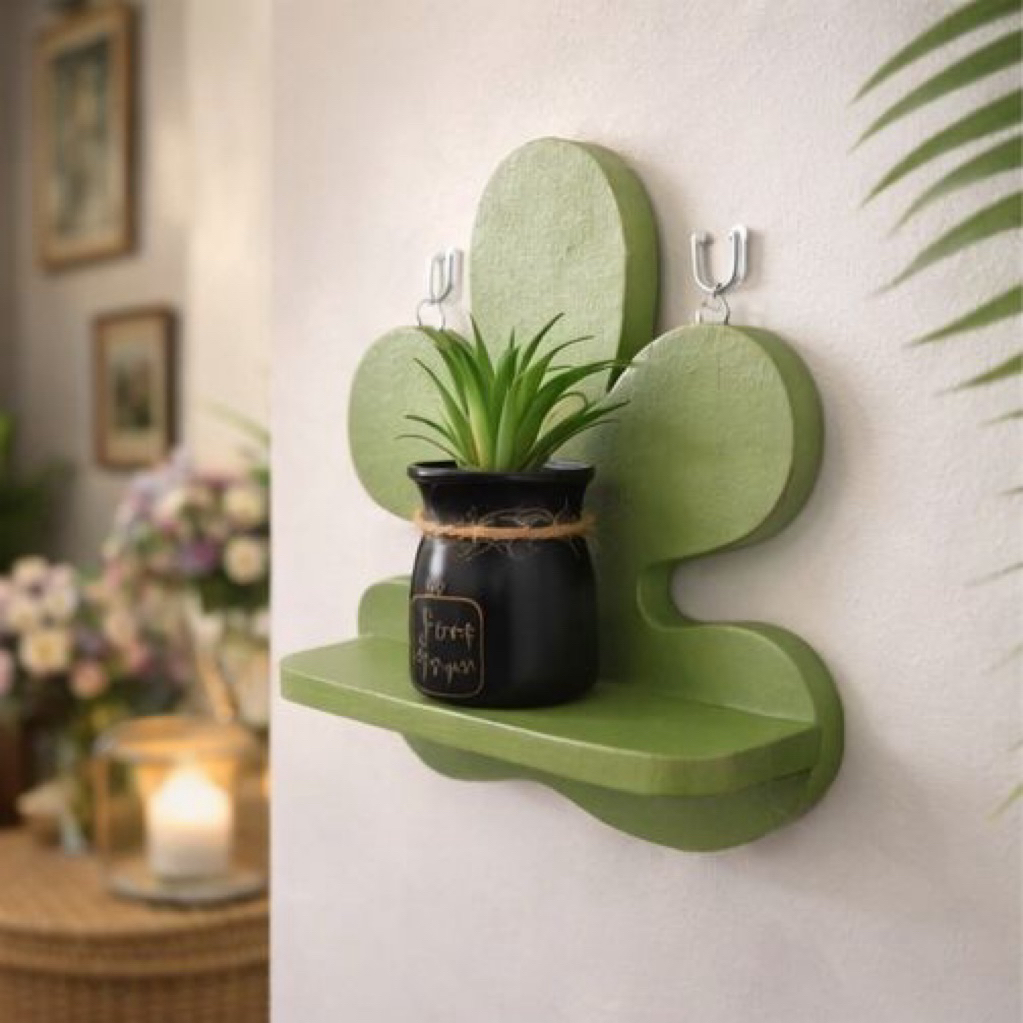 Prima Shabby Rak Ambalan Dinding Kaktus Bunga Irregular Aesthetic 20x22cm