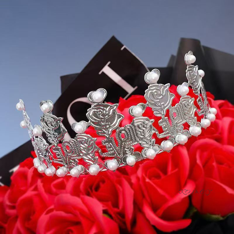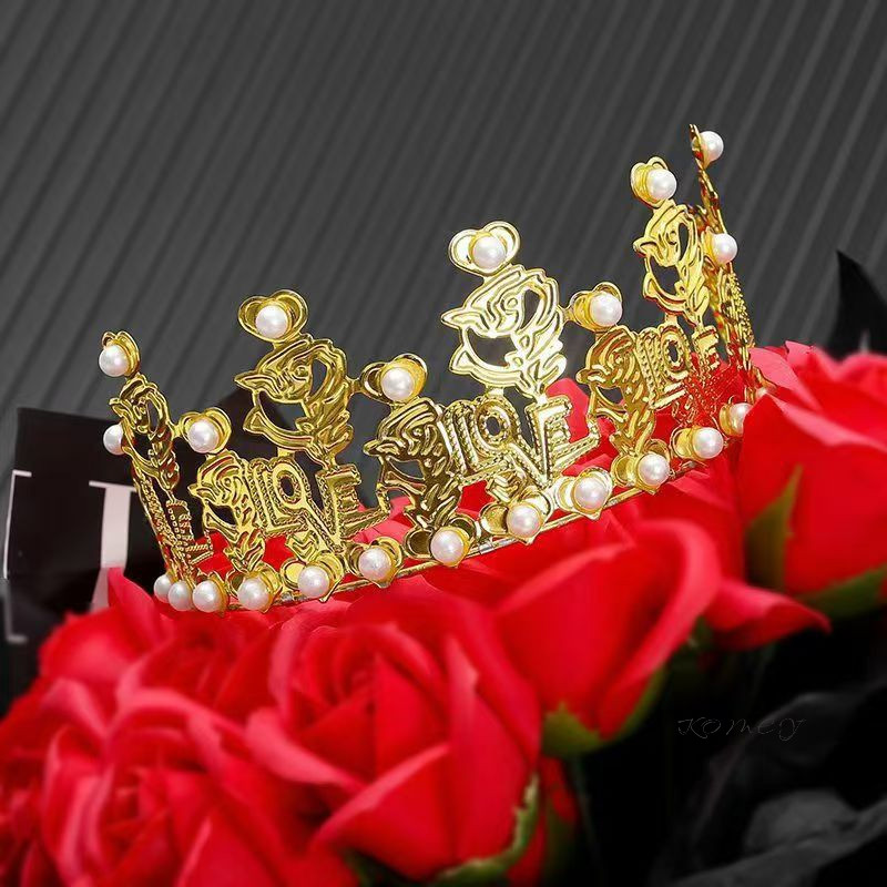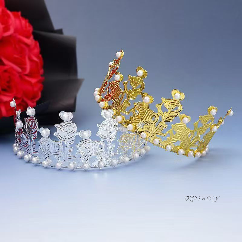 Dekorasi Mahkota Mini DIY - Tiara Mahkota Mutiara Hadiah Pesta Ulang Tahun/Dekorasi Sisipan Kue Pesta Ulang Tahun Berongga Romantis /komey