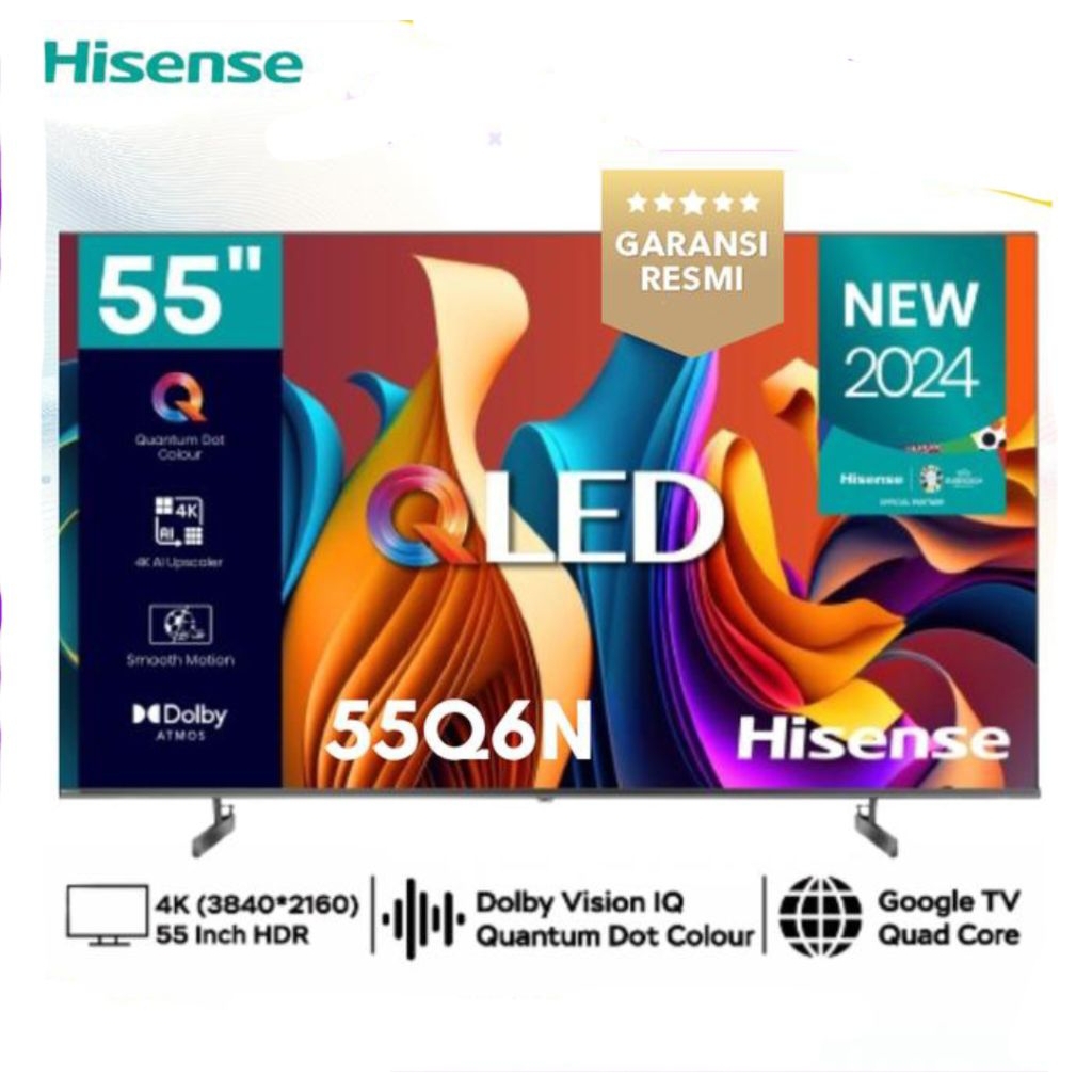 TV Hisense 55Q6N 55" Inch QLED Google Smart TV Bezelles Design Dolby Vision Atmos Garansi Resmi