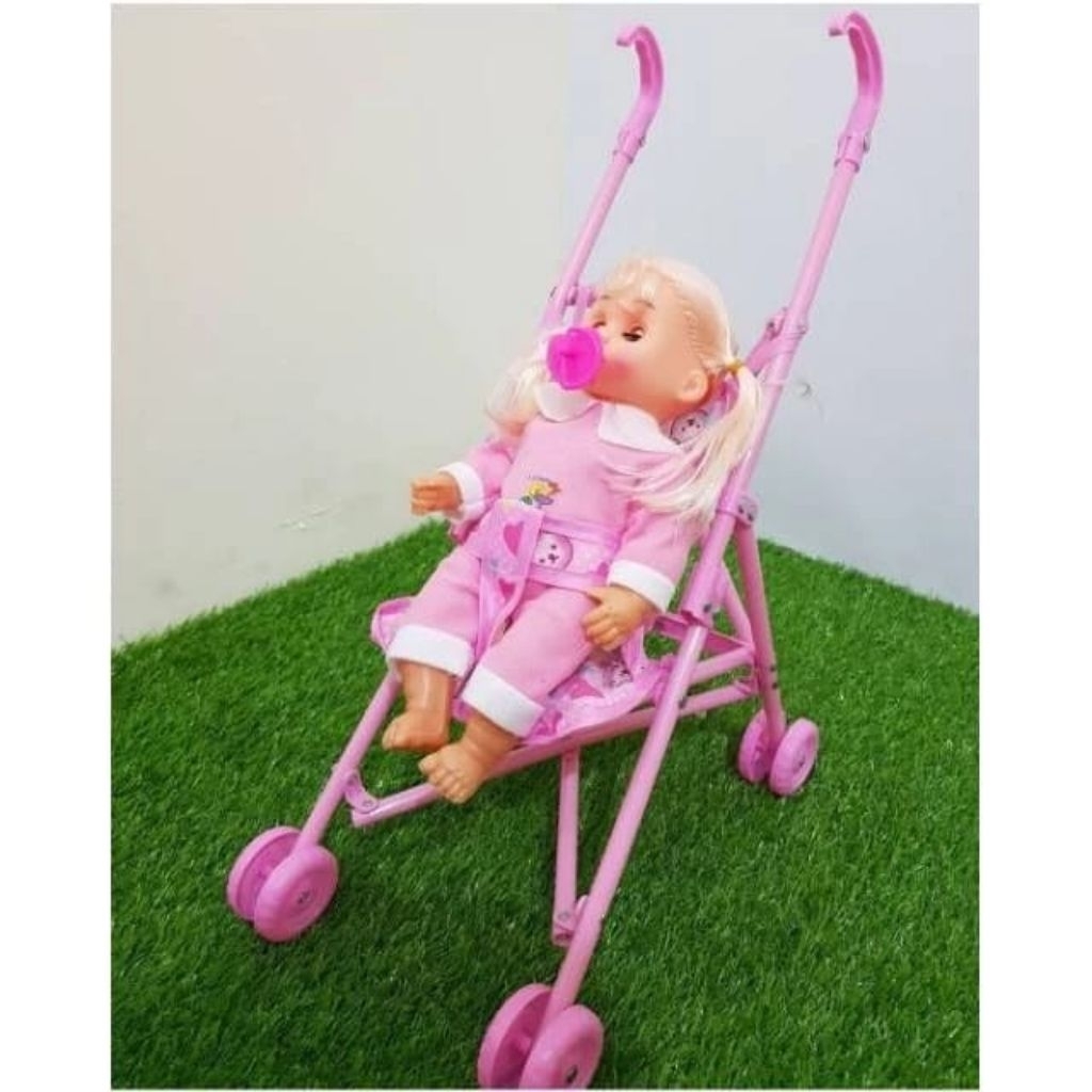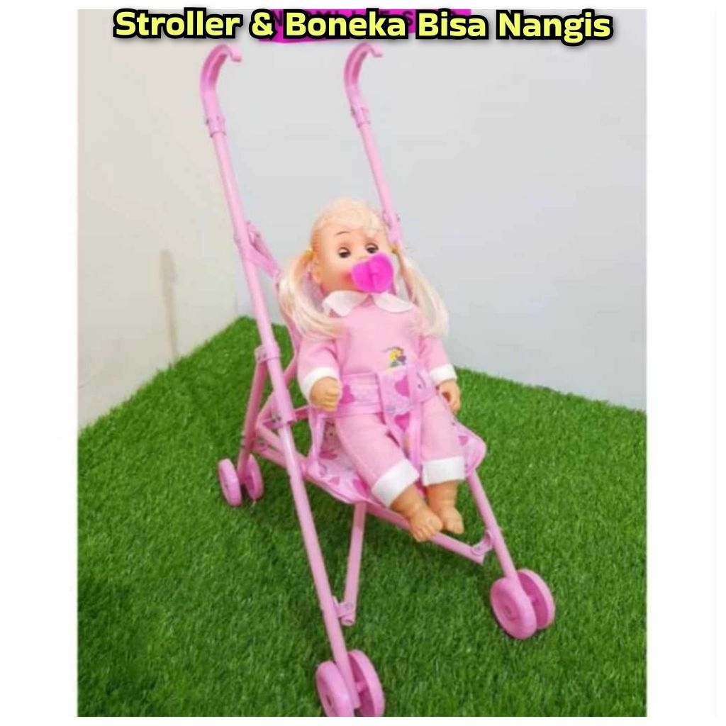 Mainan dorongan bayi dan boneka bisa nangis - Miniatur Baby stroller koleksi anak perempuan cewek
