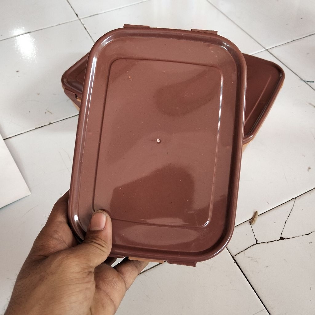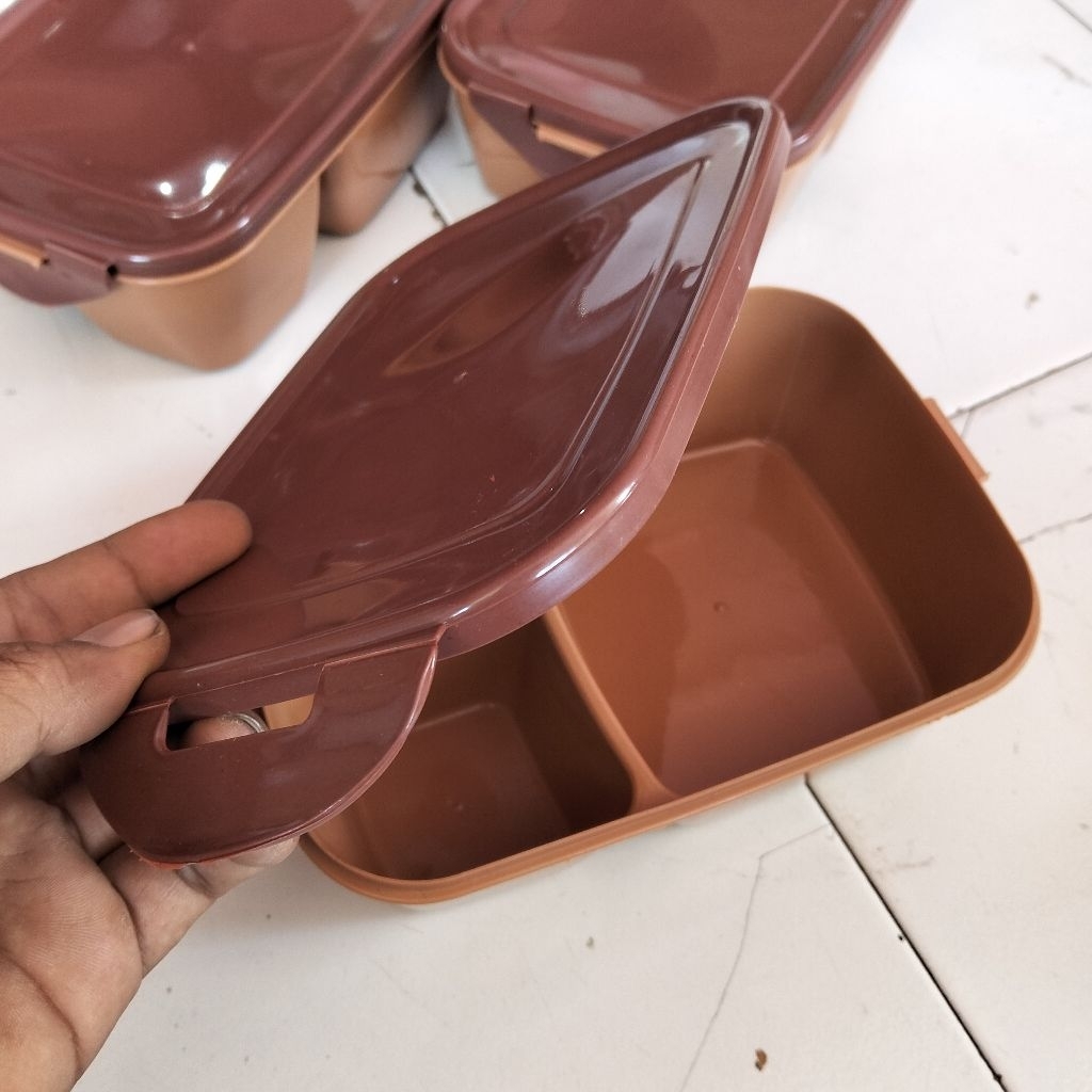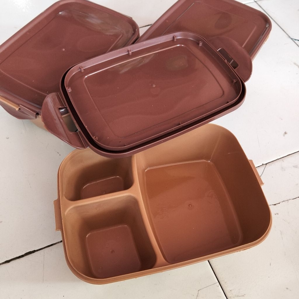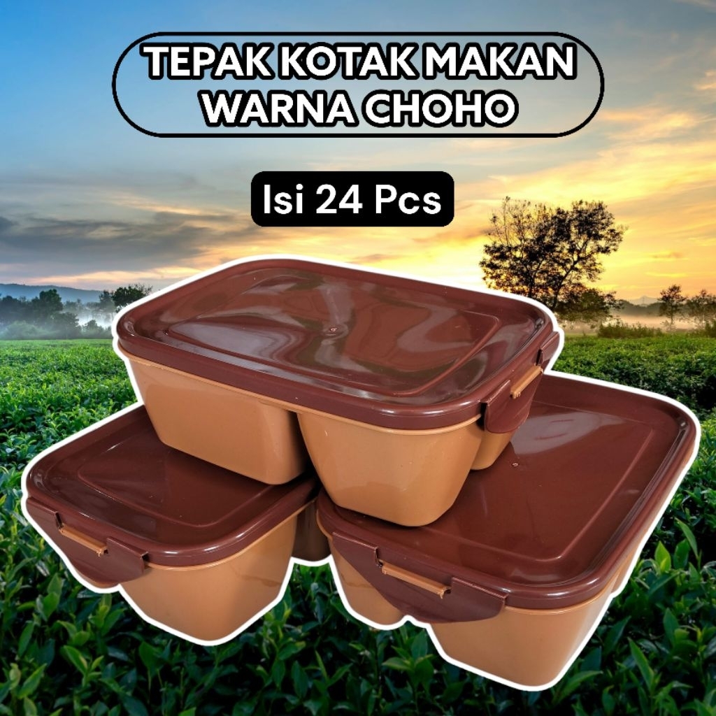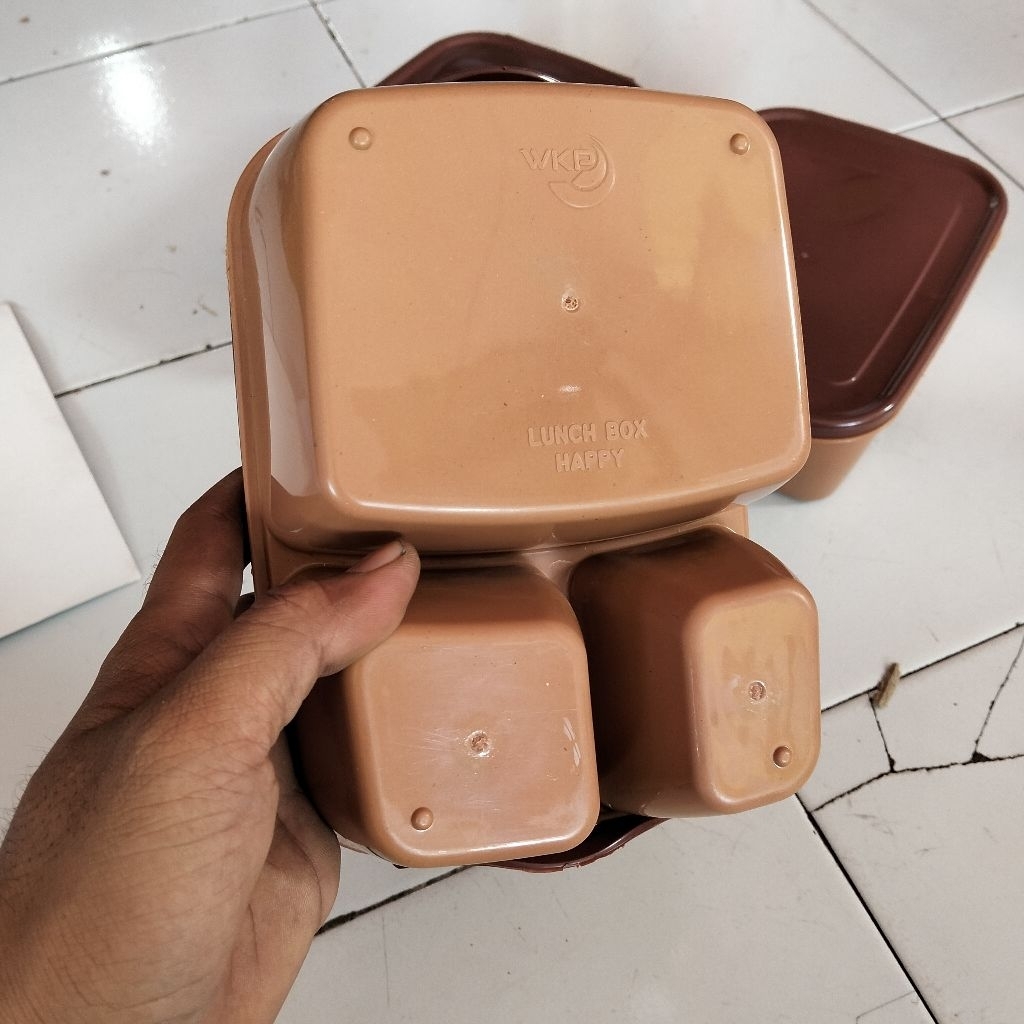 ( Isi 24 pcs ) Tepak kotak bekal makan plastik warna coklat / Lunch box happy / ompreng